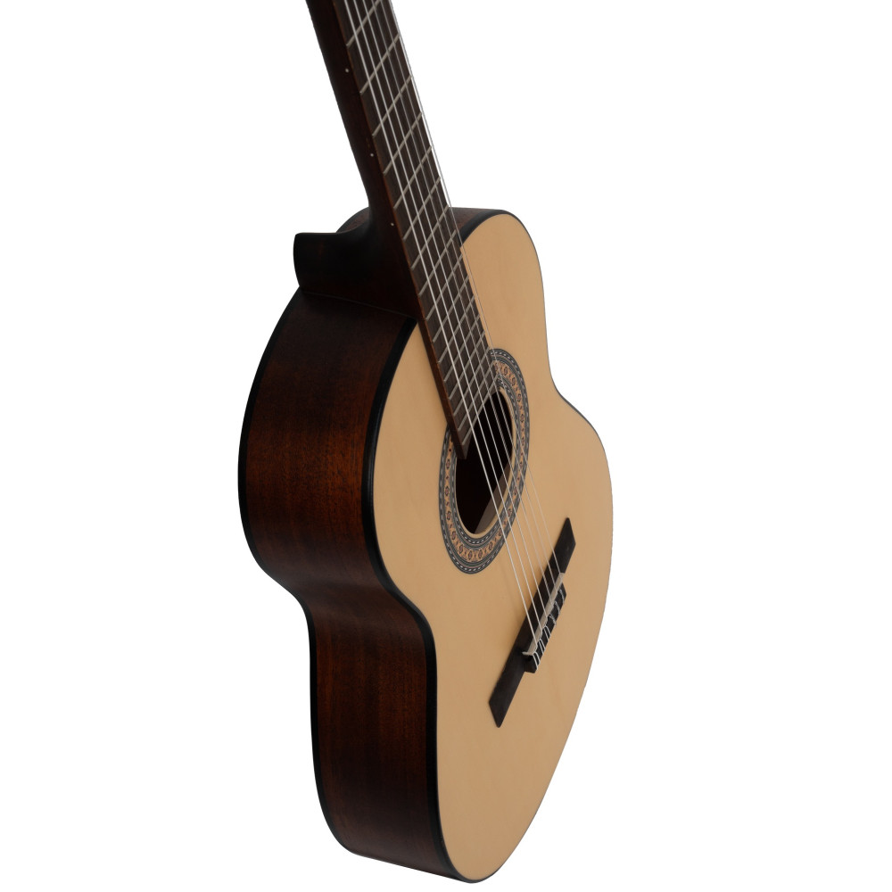The classical style Everdeen models have been re-engineered to improve resonance for an authentic classical guitar sound. The nice combination of tone-woods yields a traditional, deep and delightfully mellow tone. Everdeen Classical series is very forgiving of student mistakes, requiring slightly less precision and sharpness for a good tone. CG130 has a smaller body size, shortened scale to help players on their journey, specially designed for novices, but with pro-level features and quality materials for an authentic playing experience.