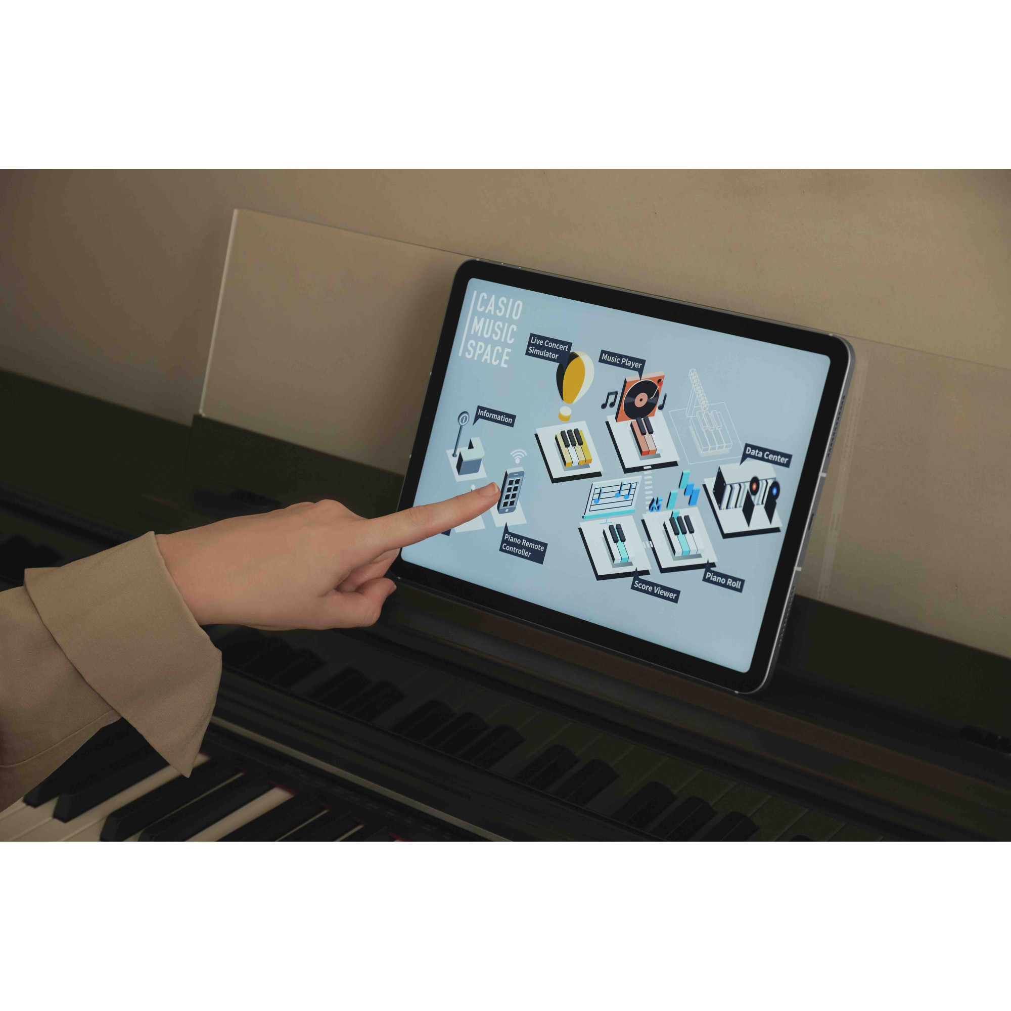 - Explore a variety of features that expand the graphical editing of the instrument's functions and enhance your piano experience through the dedicated app "CASIO MUSIC SPACE"