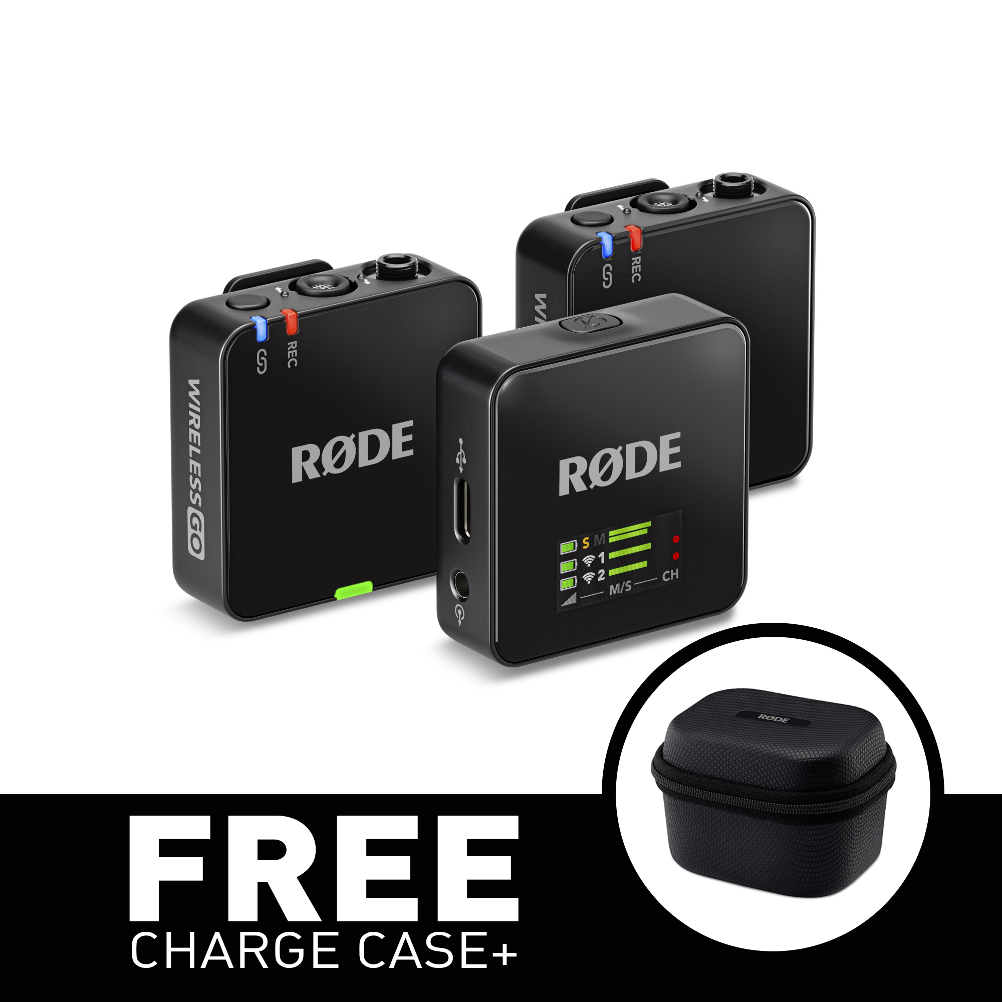 Charge Case+ er et kompakt ladeetui til Wireless GO (Gen 3), der holder hele systemet opladet og samtidigt giver sikker opbevaring. Med det integrerede batteri får man to fulde opladninger, hvilket giver op til 21 timers brug. Charge Case+ muliggør også dataoverførsel af lydfiler, justering af indstillinger og softwareopdatering, når etuiet er tilsluttet en computer. Charge Case+ tilsluttes og oplades via USB-C og har desuden batteri- og ladeindikator.