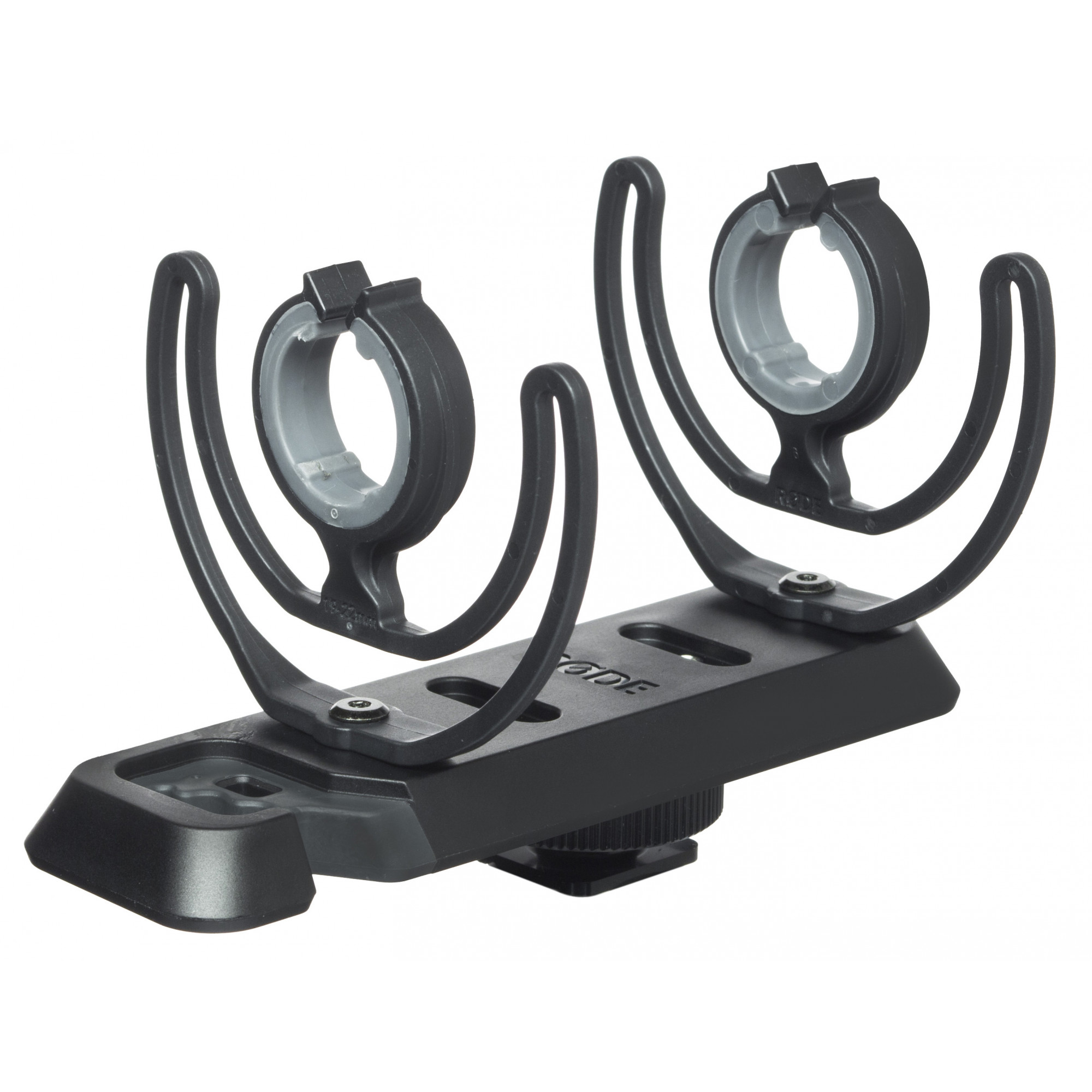 SM-3R er et shock mount med kameradapter der tillader montering af de fleste Røde-mikrofoner på et kamera et standard blitz beslag.