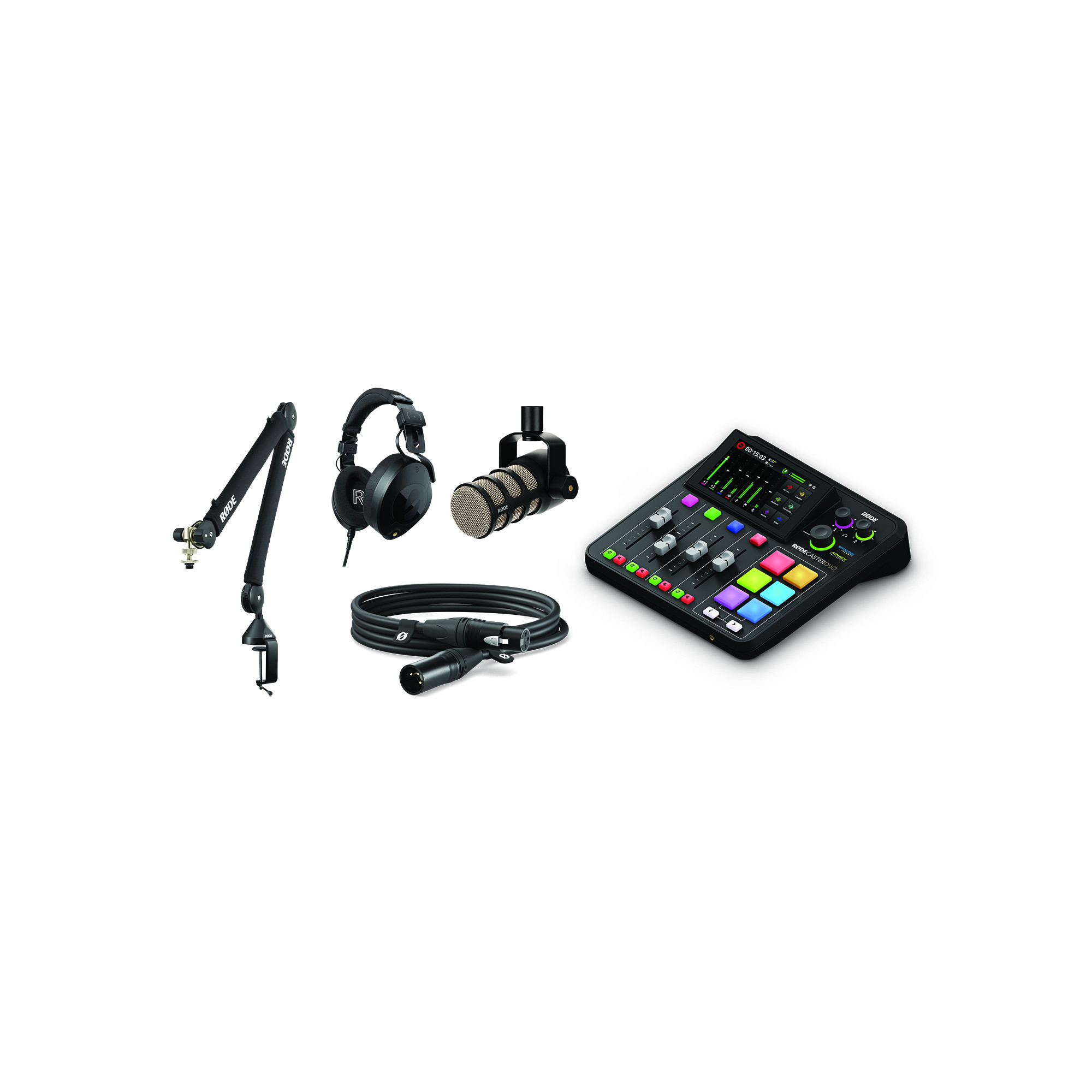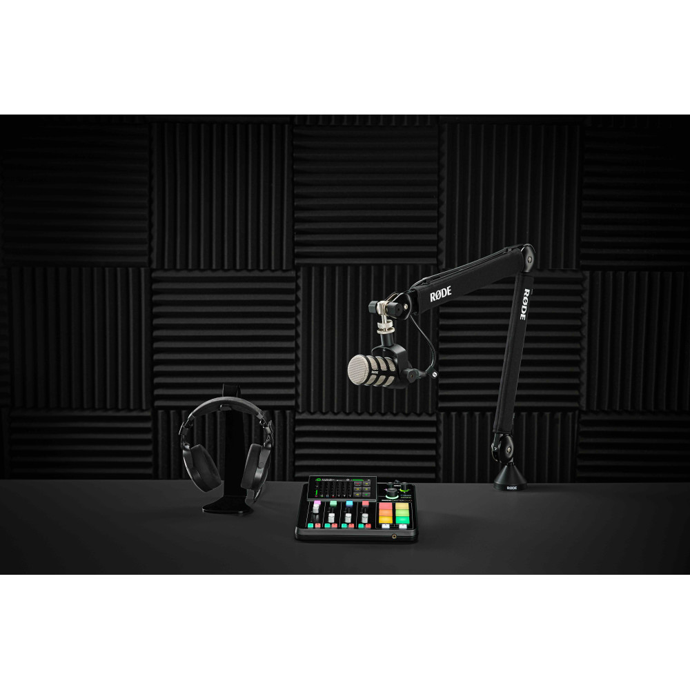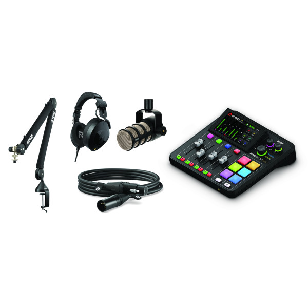 RØDE Two-person podcasting bundle er en perfekt pakkeløsning til brugere, som stiller høje krav til deres podcast/gaming-udstyr og vil have god lydkvalitet og komfort. Bundlen indeholder 1 RØDEcaster Duo, 1 RØDE PodMic, 1 NTH-100 hovedtelefoner, 1 PSA 1+ Professional Studio Arm og 1 Røde XLR 3m XLR/XLR-kabel.