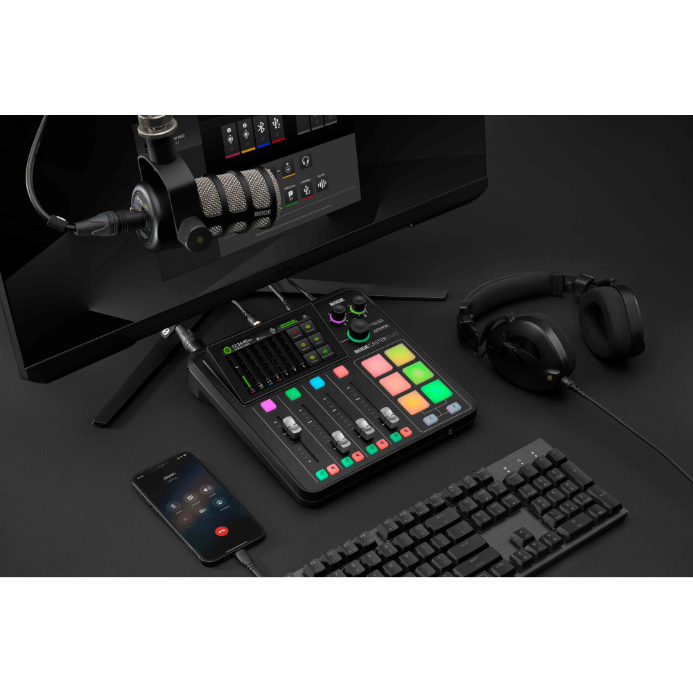RØDECaster DUO den ultimative lydproduktionsløsning til streamere, podcastere, musikere og content creators. At kombinere revolutionerende funktioner med enestående lydkvalitet, brugervenlighed og tilpasningsmuligheder er simpelthen alt, hvad lydskabere nogensinde har brug for for at skabe utrolige resultater. Alle komponenter er omhyggeligt designet til at forenkle produktionsprocessen ved at kombinere for titusindvis af dollars af studieudstyr i én enkelt, brugervenlig konsol.