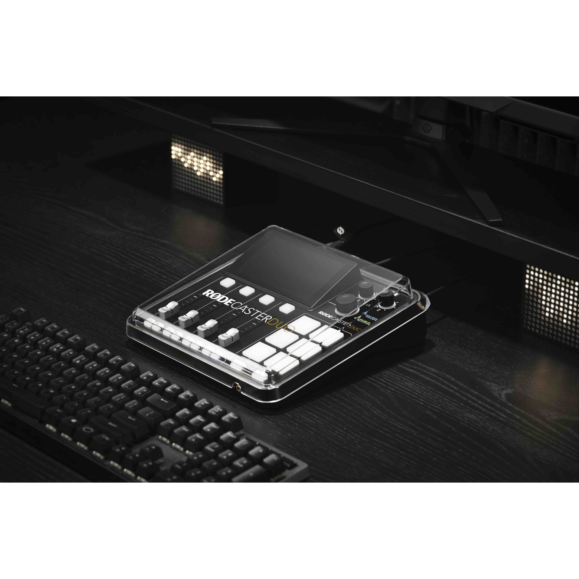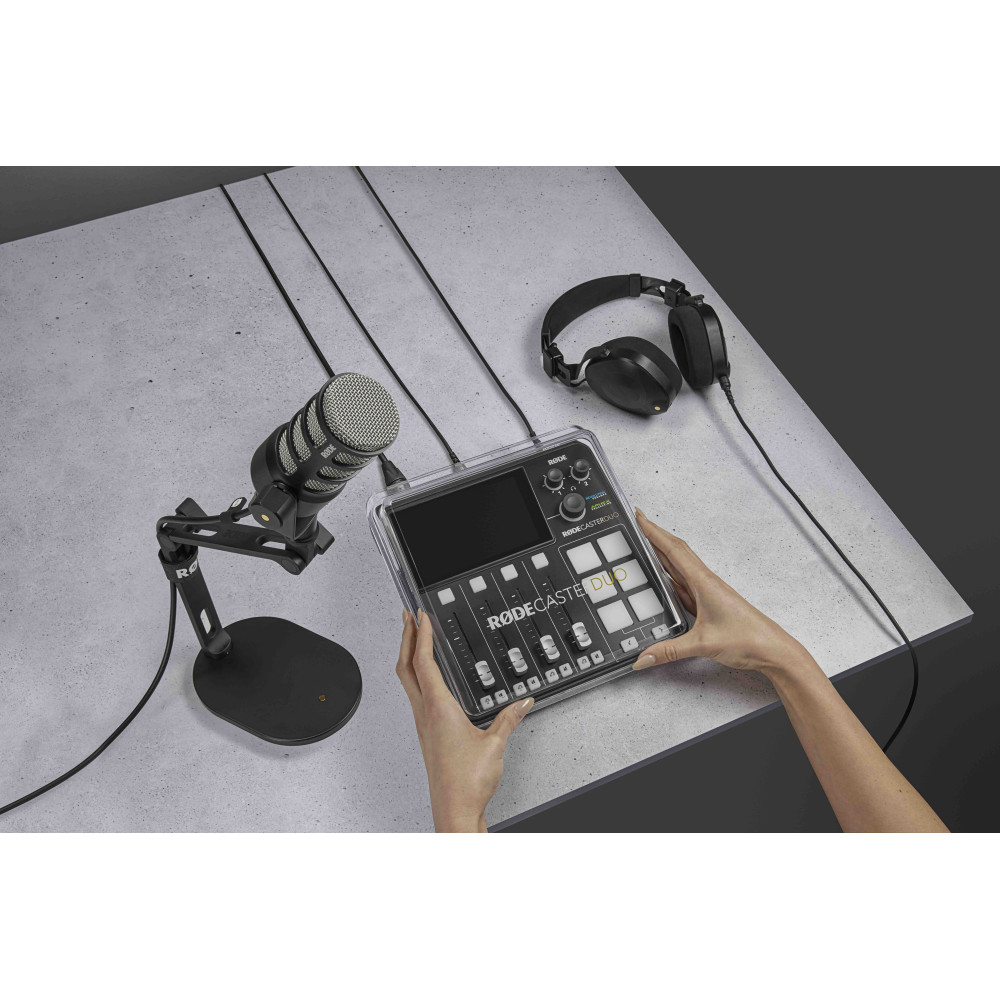 RØDECover Duo er et specialdesignet cover designet til at passe perfekt over RØDECaster Duo. Den er lavet af klar højkvalitets polycarbonat, og er ekstremt holdbart og sikrer, at både indvendige og udvendige komponenter i RØDECaster Duo er beskyttet mod snavs og støv.