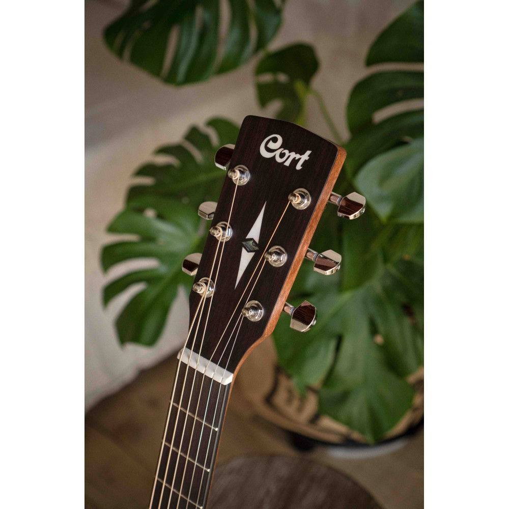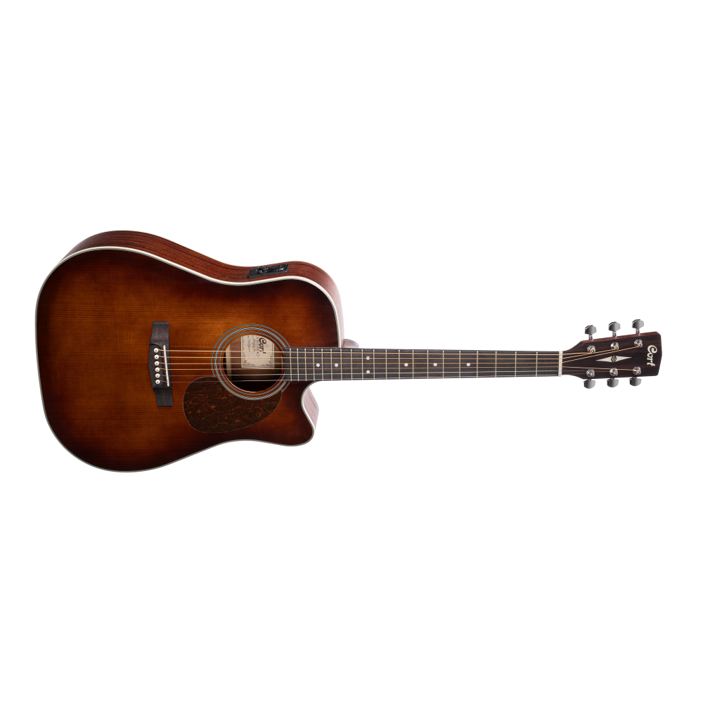 The MR Series represents Cort’s mission to provide the highest quality traditional instruments with superb workmanship and modern features at an unbeatable value. MR500E is a solid spruce top, mahogany back and sides, Ovangkol fingerboard. The classic dreadnaught body has a Venetian cutaway for easy high fret access and is equipped with Cort CE304T electronics to deliver the MR’s natural acoustic sound to an amplification system for both live and recording applications.