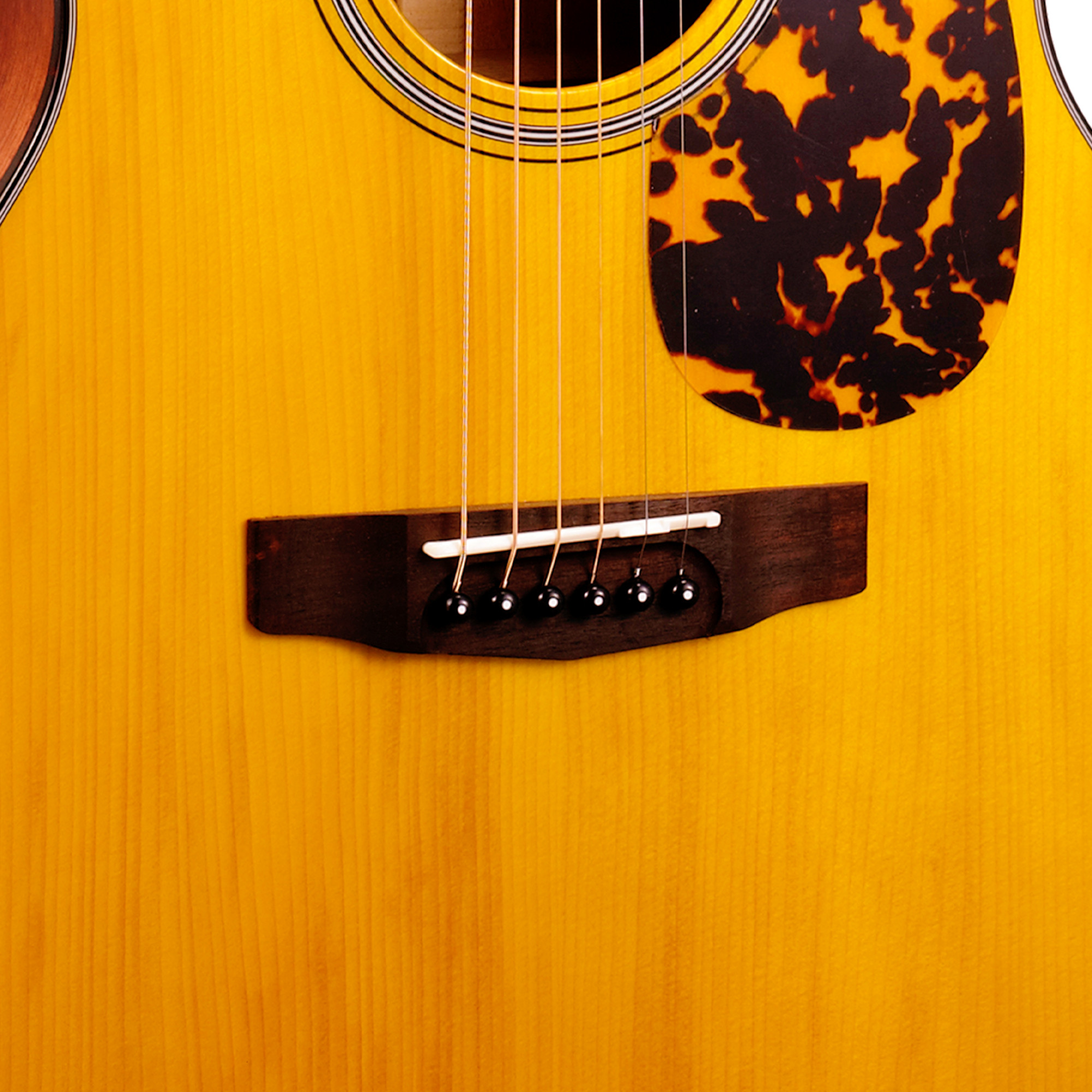 Stronger and denser than Sitka spruce, the Adirondack spruce is characterized by broad dynamics as well as articulation and smoothness at high volume. The elastic tactile response suits both aggressive strumming and precise flatpicking. Adirondack spruce bracing further sets apart the unique sound and response of this exceptional wood. Famously used on the sought-after vintage Martin dreadnaughts of the 1930’s, the difficult-to-source Adirondack spruce is the crowning feature of this model at a most reasonable price.