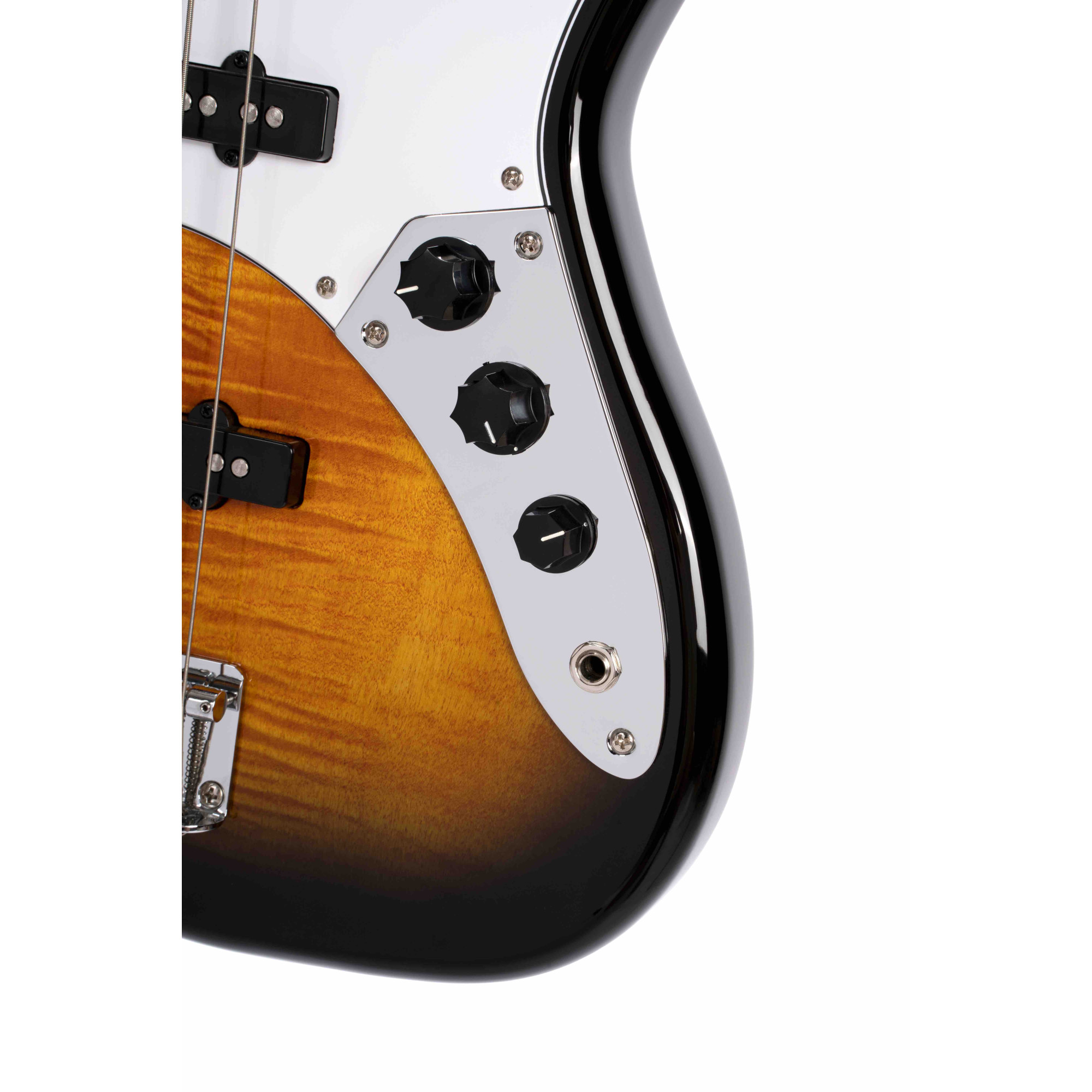 The lush flamed maple top provides a classy premium look that can only be found on higher priced instruments. Poplar used for the body is considered to be similar to Alder in tone, providing full-bodied resonance with a meaty tone.