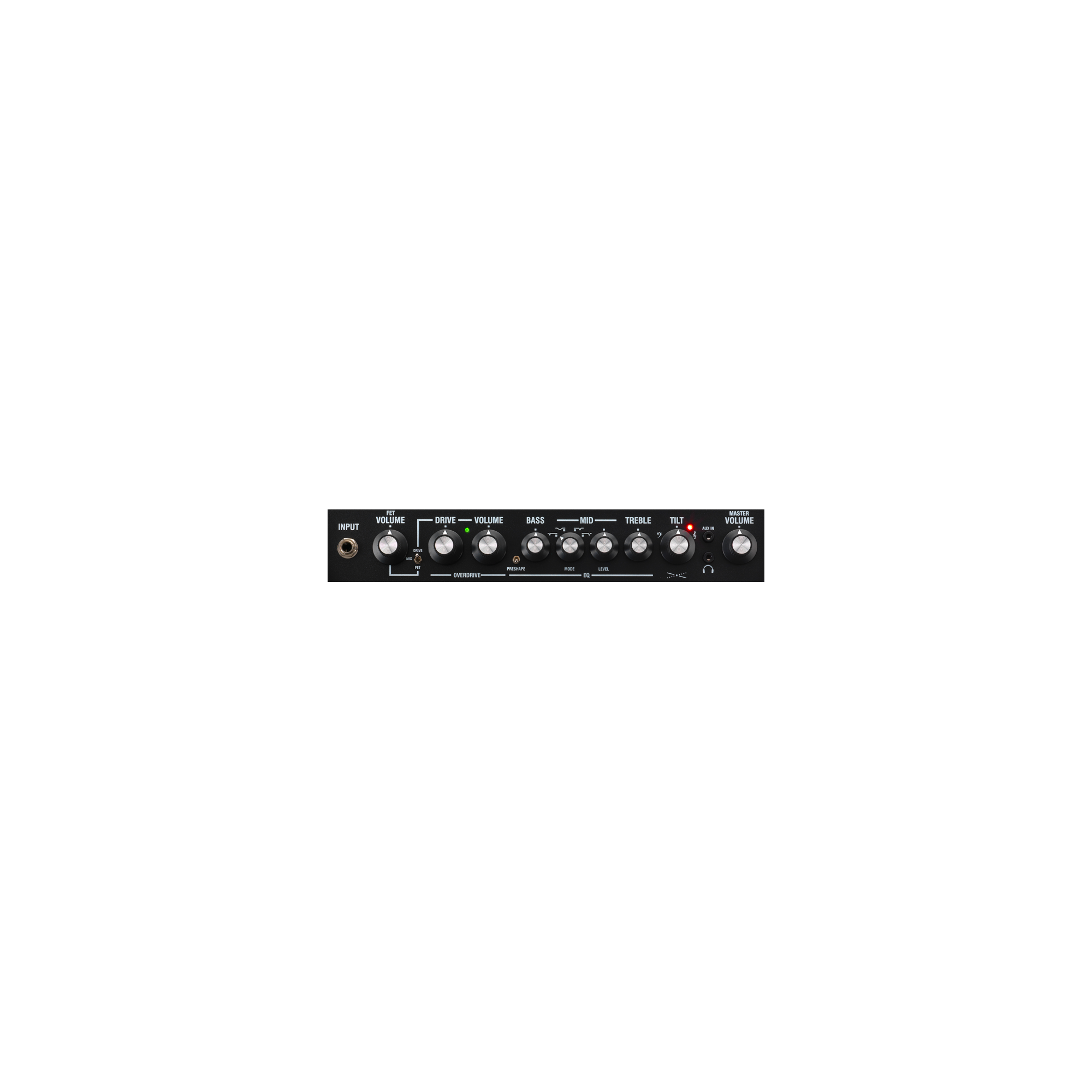 • Two Channels. FET and Drive, with mix options for gritty drive whilst maintaining clarity.