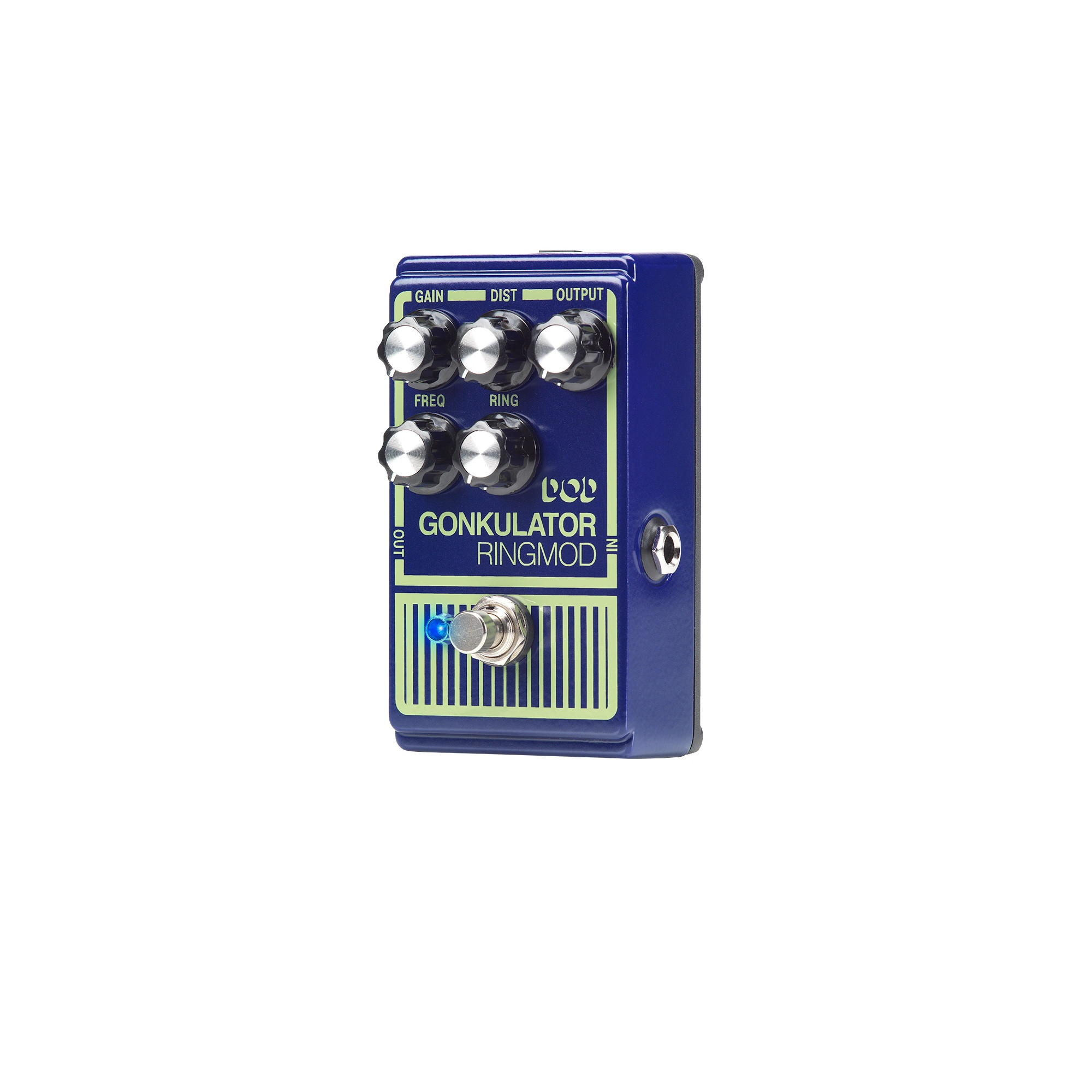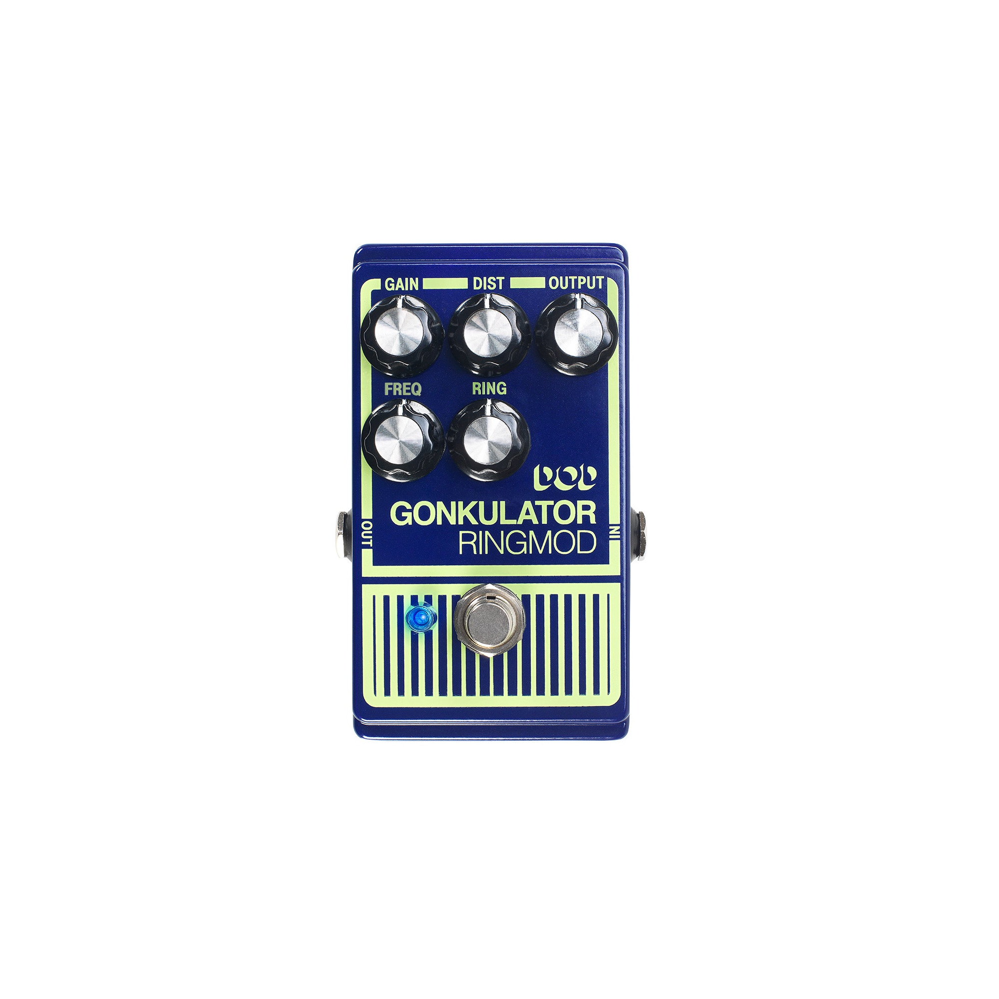 Pairing an adjustable carrier signal with a revamped distortion circuit, the DOD Gonkulator essentially brings two effects into one chassis with controls for ring, frequency, gain and distortion. Capable of all the weird modulation goodness of the ’90s original with the added ability to cover distorted experimental ground, this pedal pushes boundaries and makes statements with modulating effects limited only by imagination. From bell-like clangs to spastic robotic breakdowns, the Gonk demands attention.