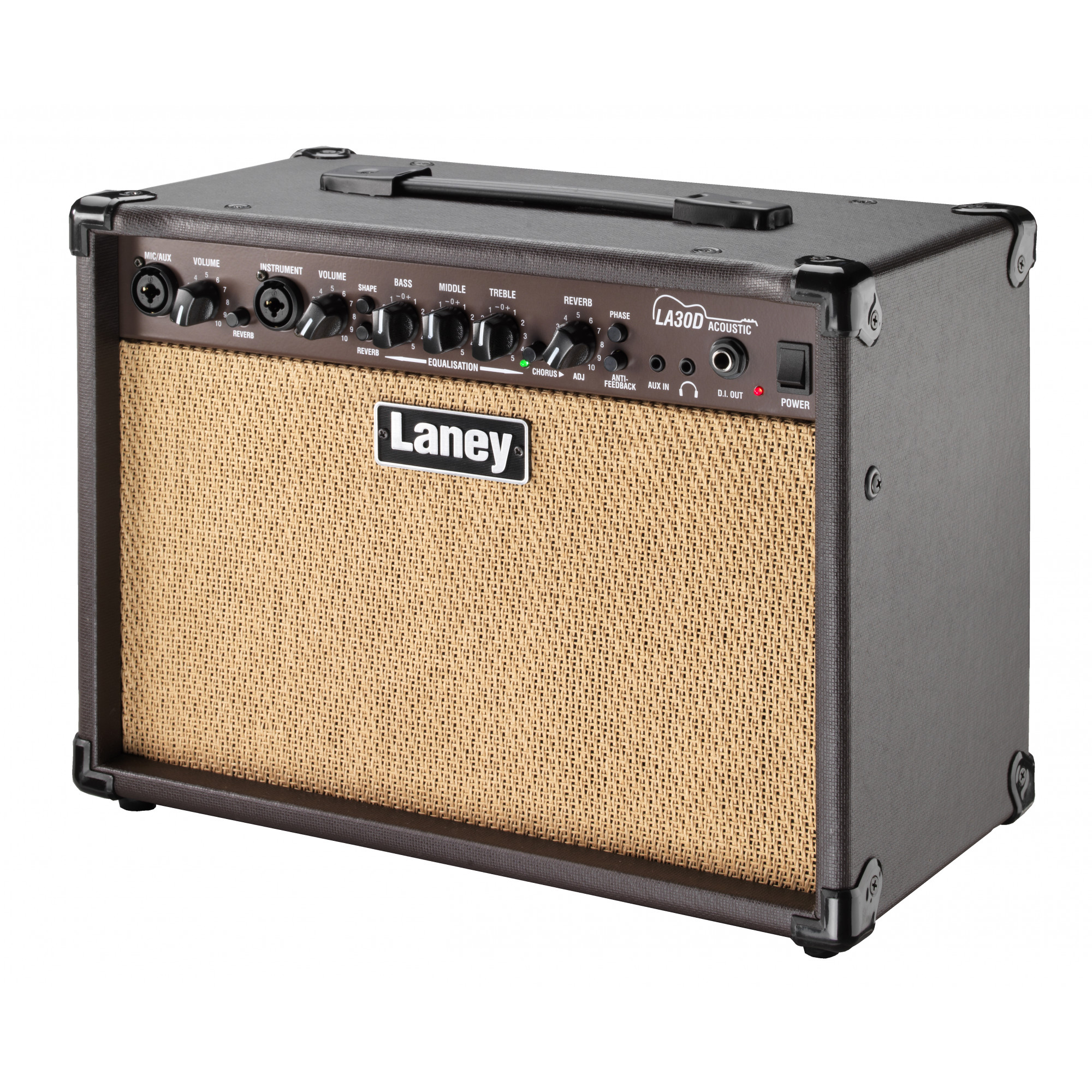 LA30D är en kompakt 30 W akustisk combo på 7,4 kg och med två 6,5” element som har specialdesignats för att reproducera akustiska instrument.