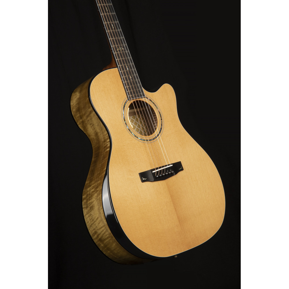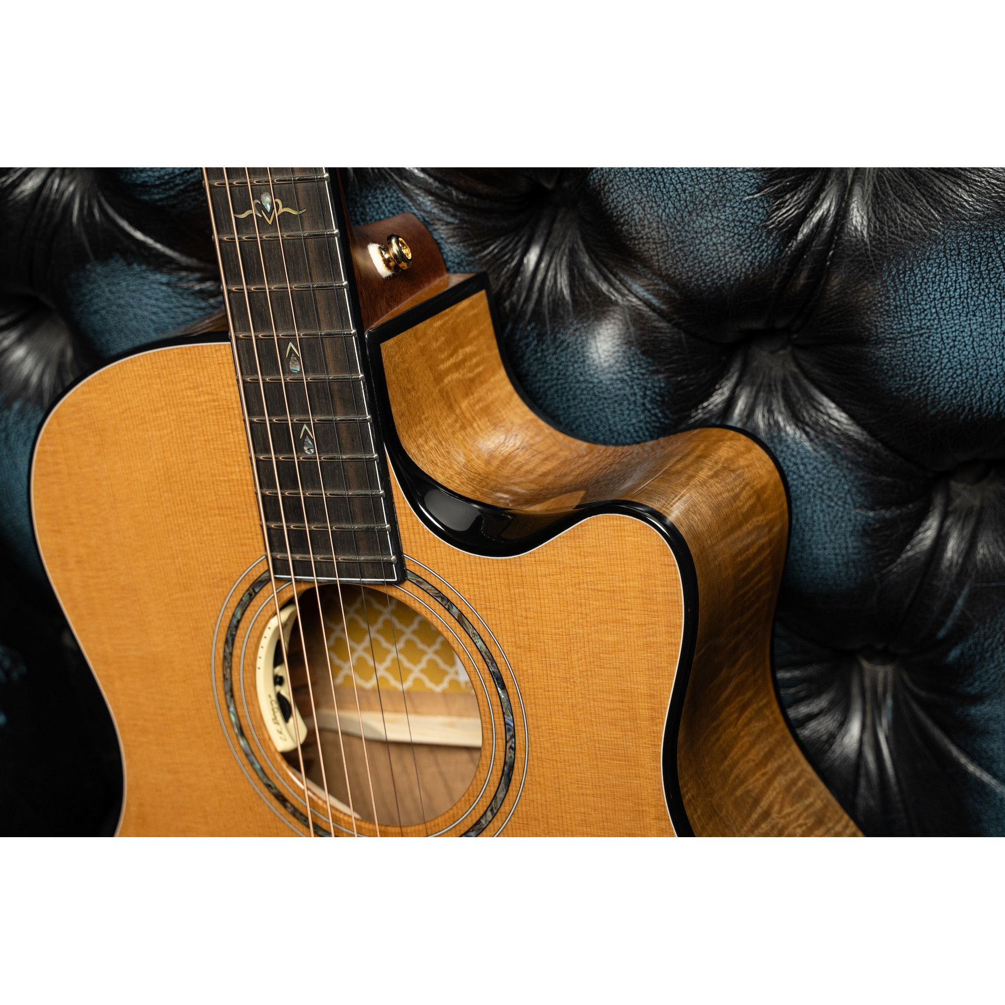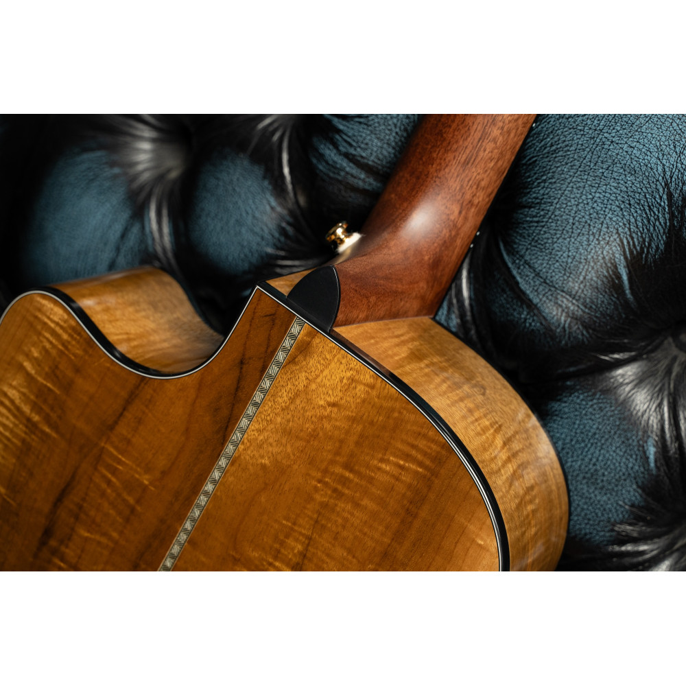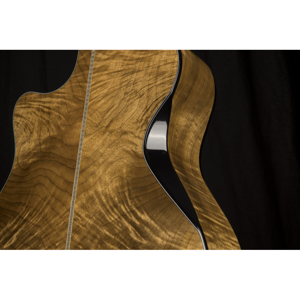 The Gold-Edge is crafted with flamed myrtlewood back and sides to enhance low-mid richness and overall projection, and topped with solid spruce for delicate clarity. It’s an ideal tonewood combination for fingerpicking and strumming alike.
