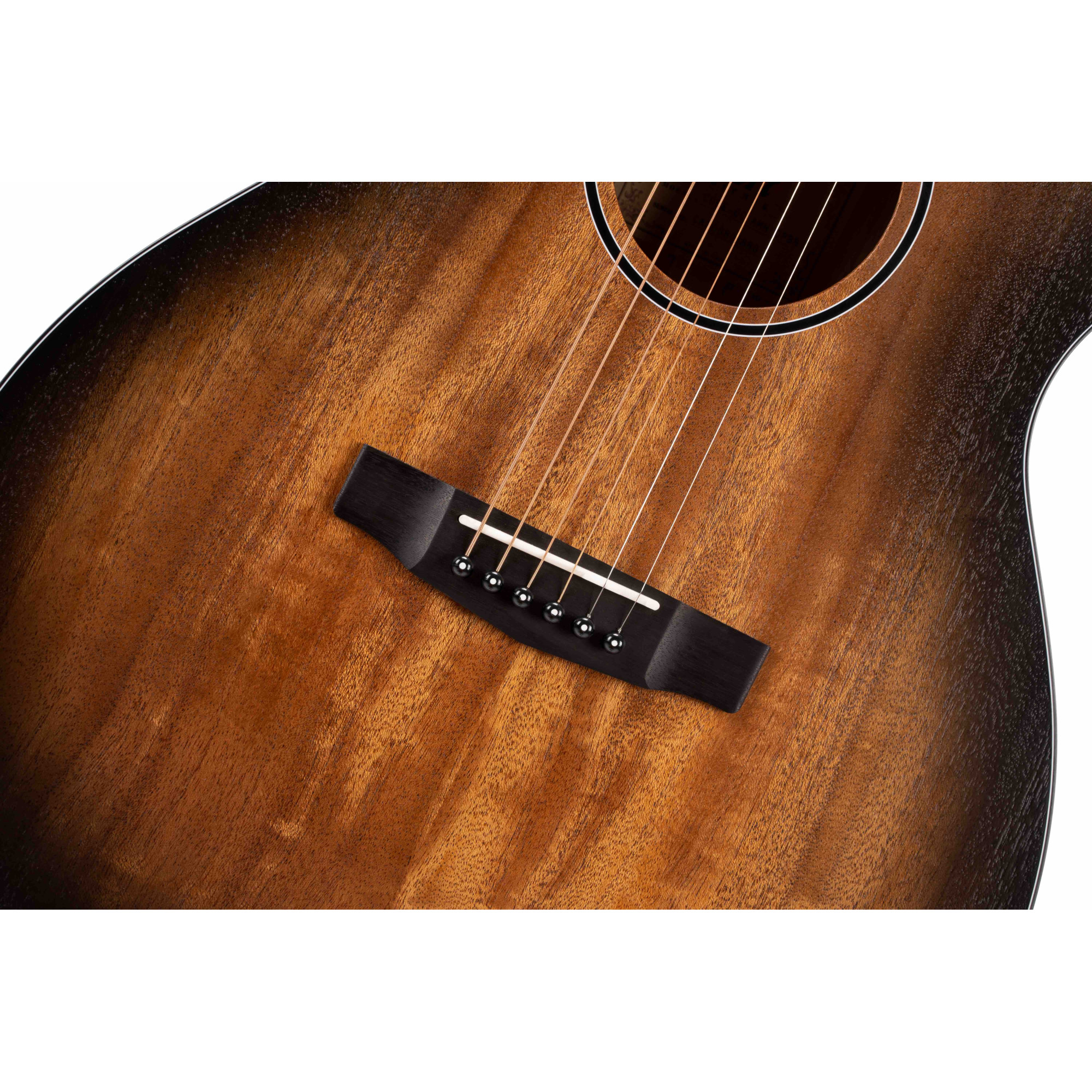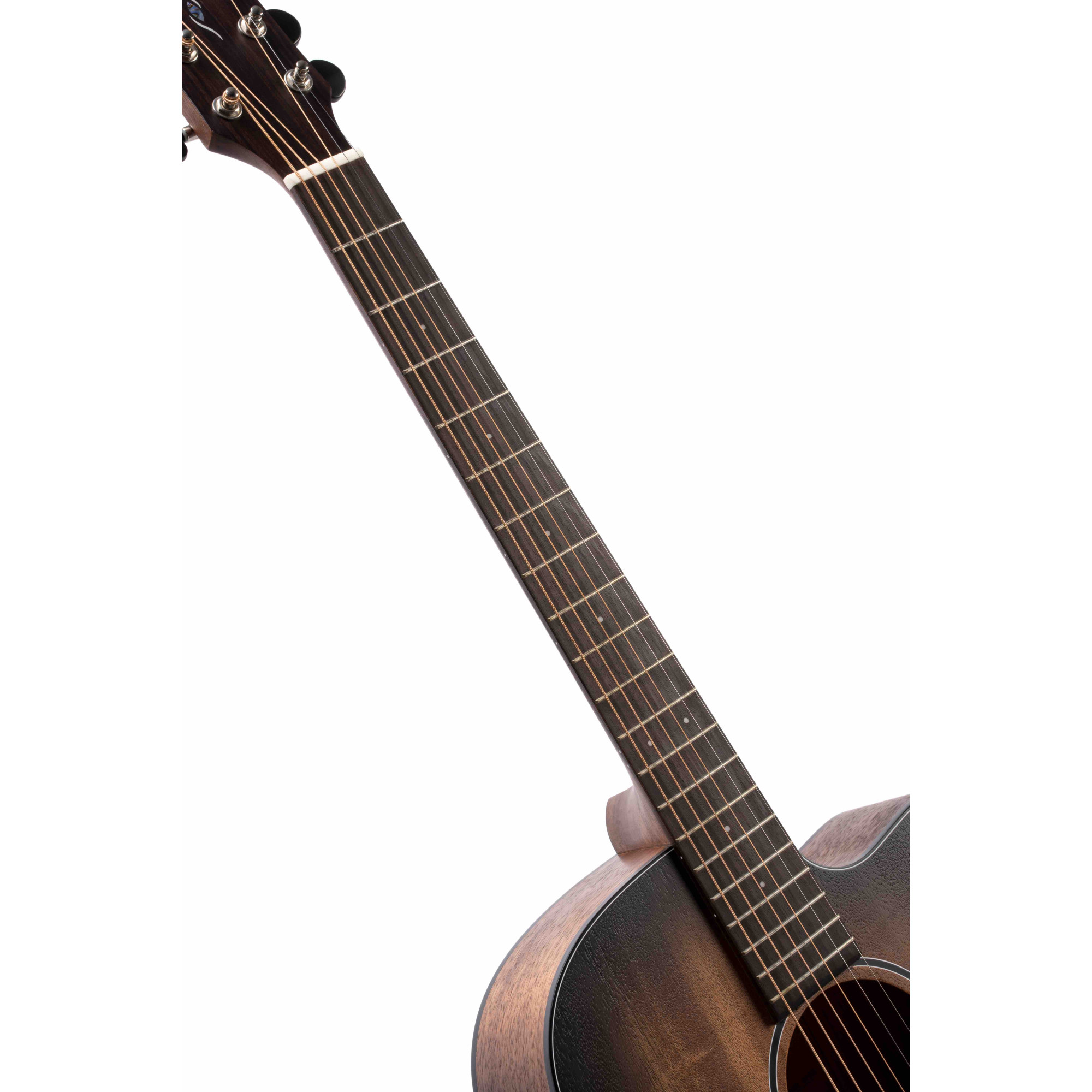 Known as a great overall tone wood, Ovangkol shares similar tone characteristics as Rosewood with a warm and slightly fuller midrange. The combination of Ovangkol fretboard with Mahogany neck produces a warmer mixture of balanced tone with deep sustain that is suitable for an acoustic guitar.