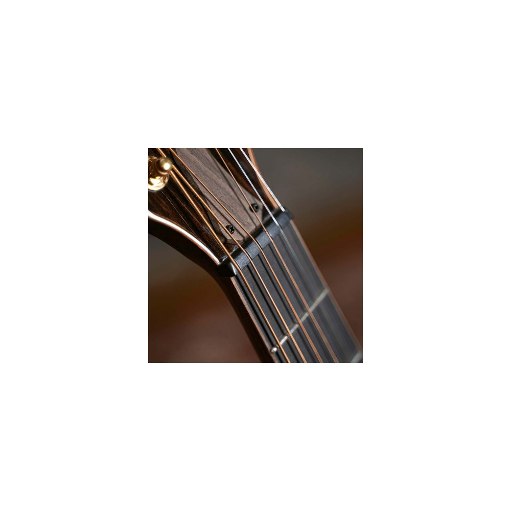 The high density of ebony keeps the fundamental acoustic sound focused and tight with greater sonic projection than plastic, enhancing the transfer of the string vibrations throughout the soundboard top, body and the neck.