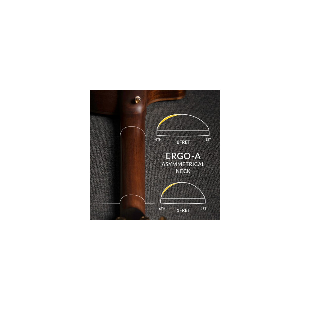Using two special inserts made of more rigid walnut, the neck on the Modern Black has been reinforced for added rigidity and stability to withstand various types of fingerstyle playing.
