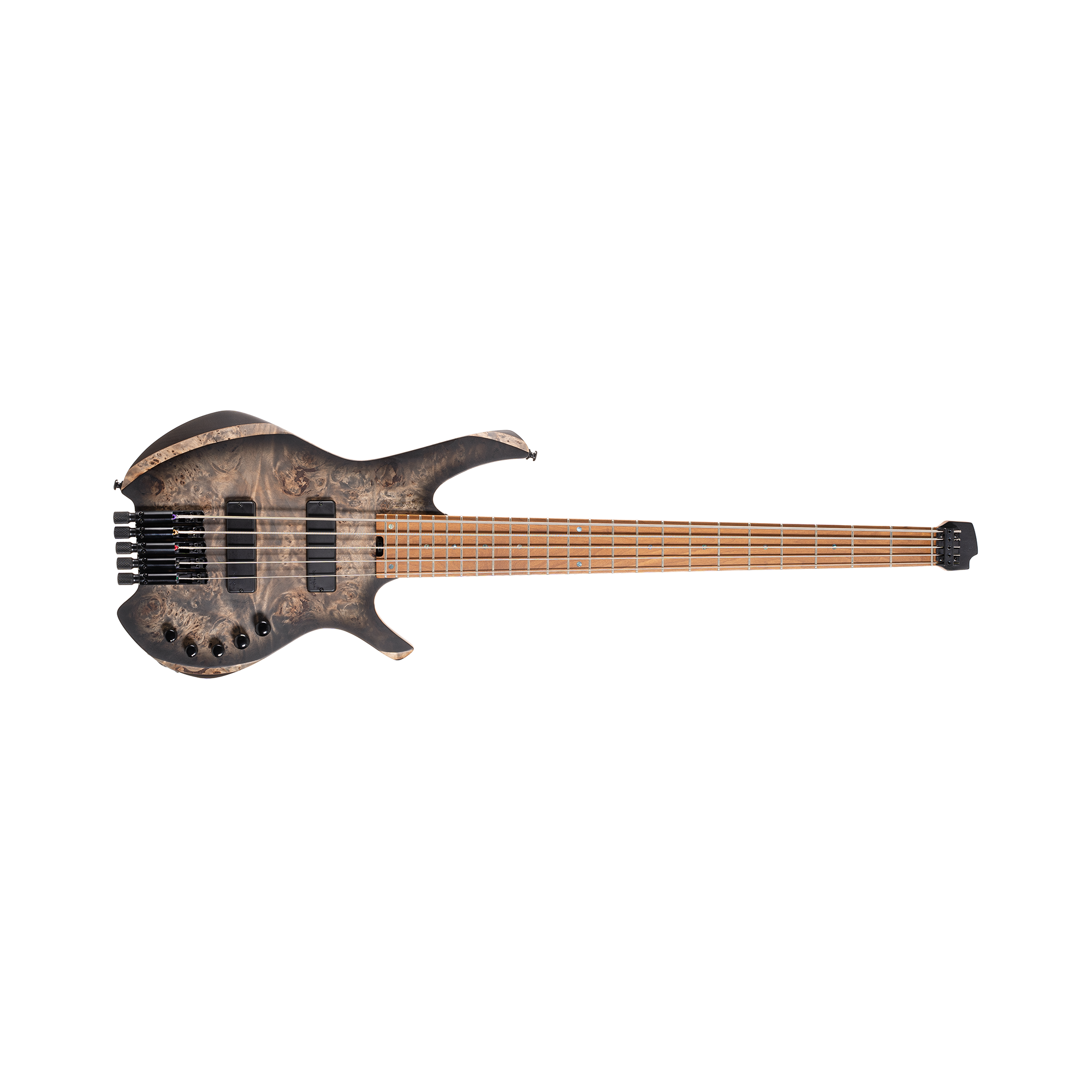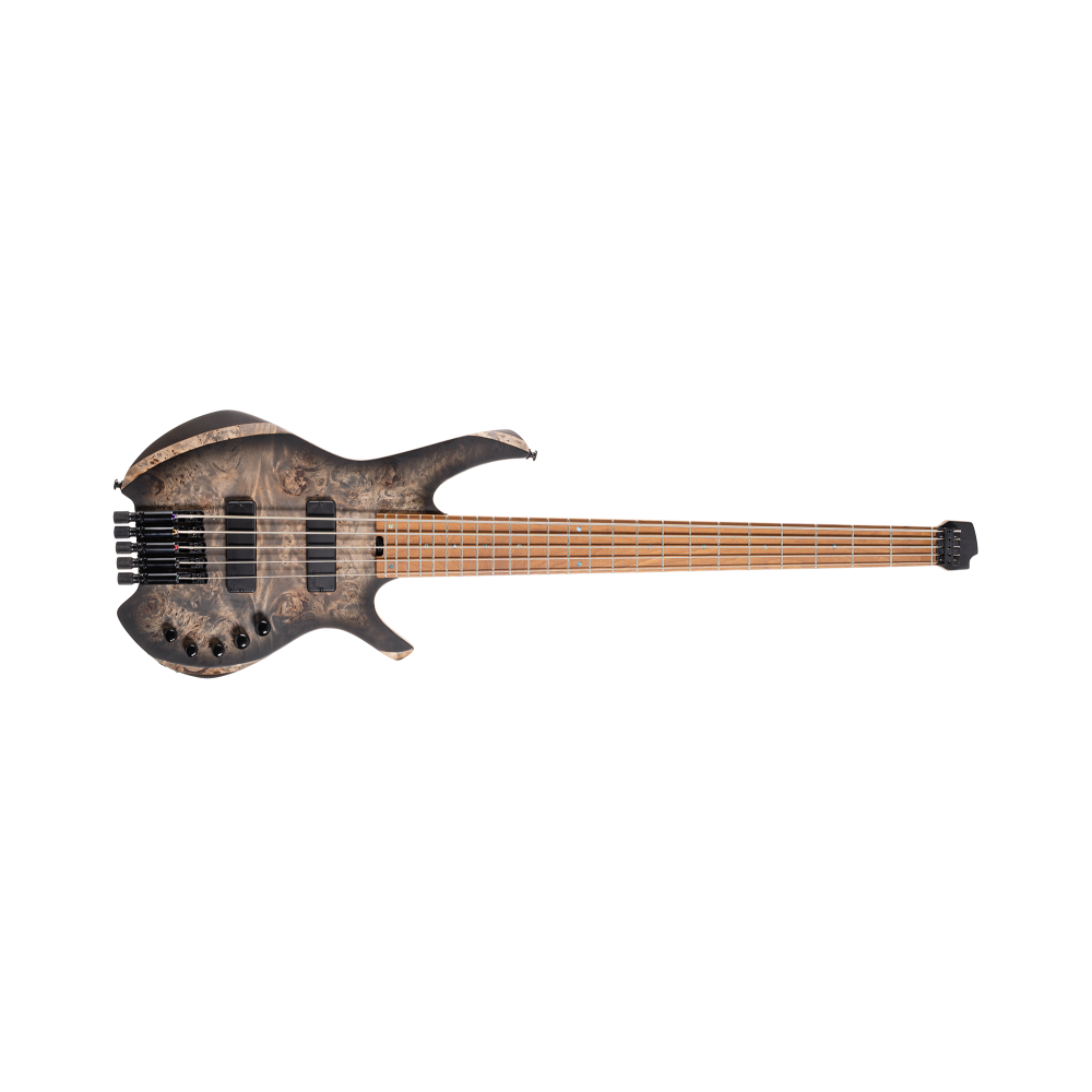 Inspired by the original Space basses from the 1980s, the Space 5 is the modern adaptation of the 80’s classic, with body and neck modeled after the modern flagship Artisan Bass Series with modifications to make it more compact (deeper and bolder contour and cutaways) and headless (individual bridge with tuner knobs).
