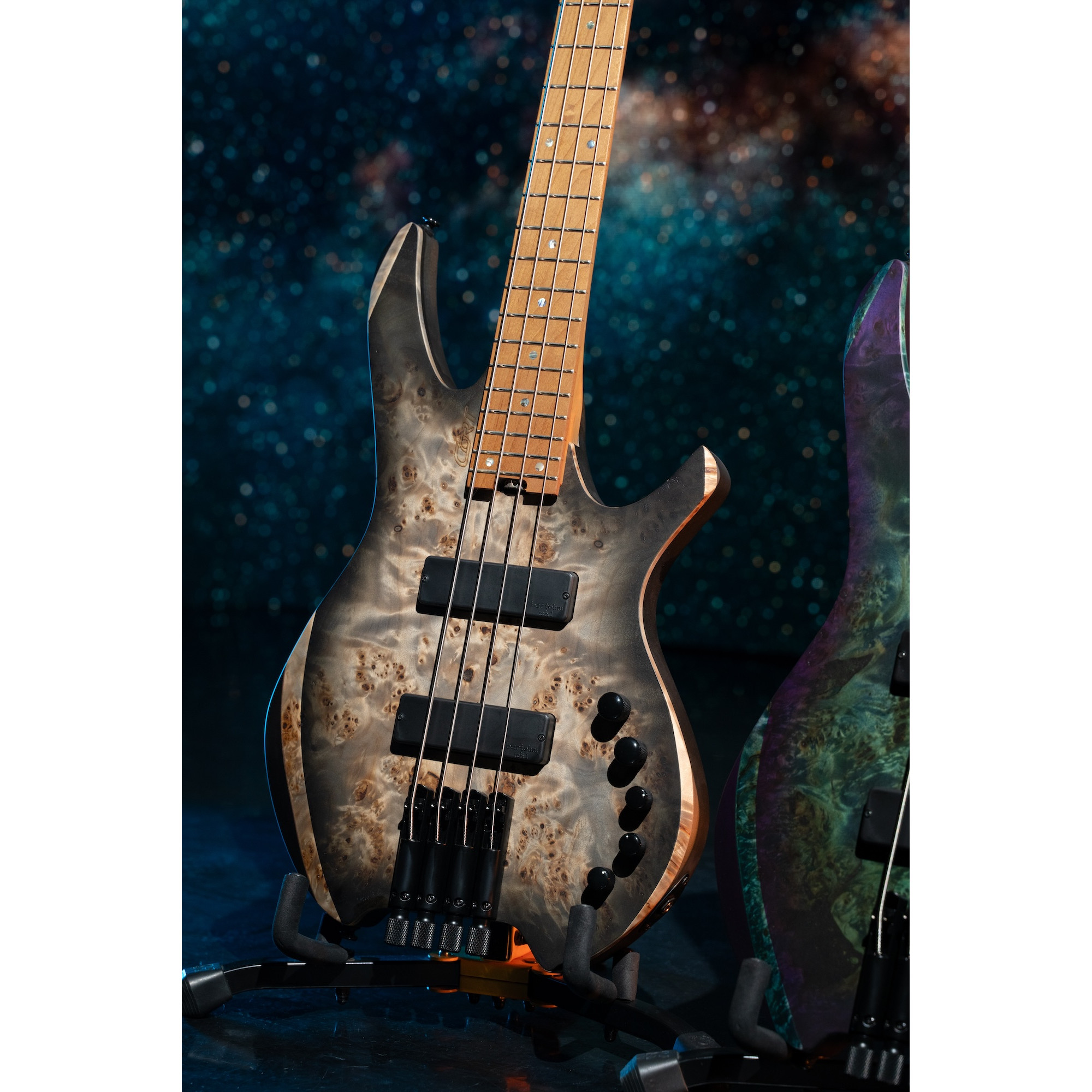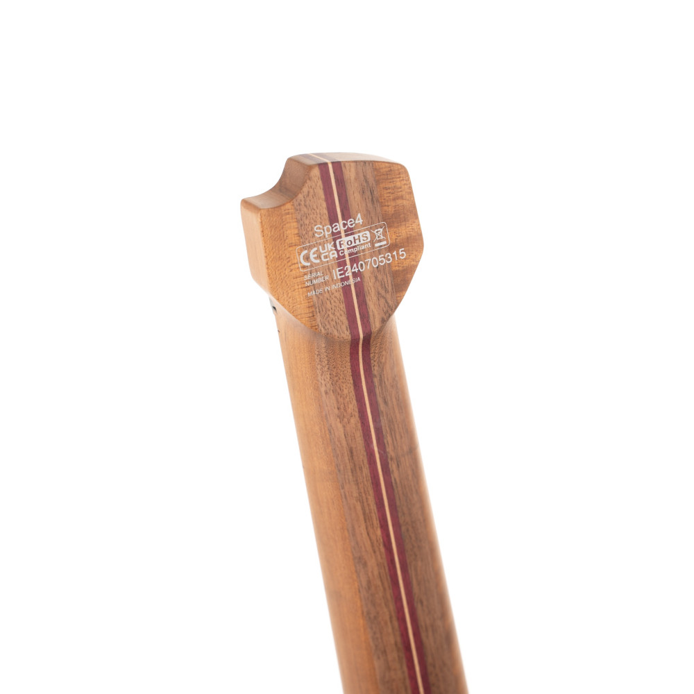 A bass is only as good as its neck, and the Space 4 shows how fast and fluid that neck can feel. The 7-piece neck combines roasted maple, purpleheart, and walnut to support the Space 4’s expansive voice with tight mids and well-defined highs.