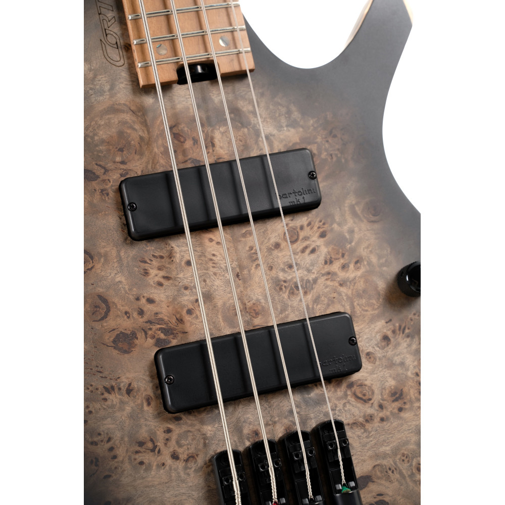 The Space 4 is equipped with Bartolini® MK-1 pickups with active 3-band EQ, giving you ultimate control to shape your tone for any setting. MK-1 pickups are voiced for robust mids with brilliant highs, giving you a rich starting point to shape your sound with the bass, mid, and treble controls.