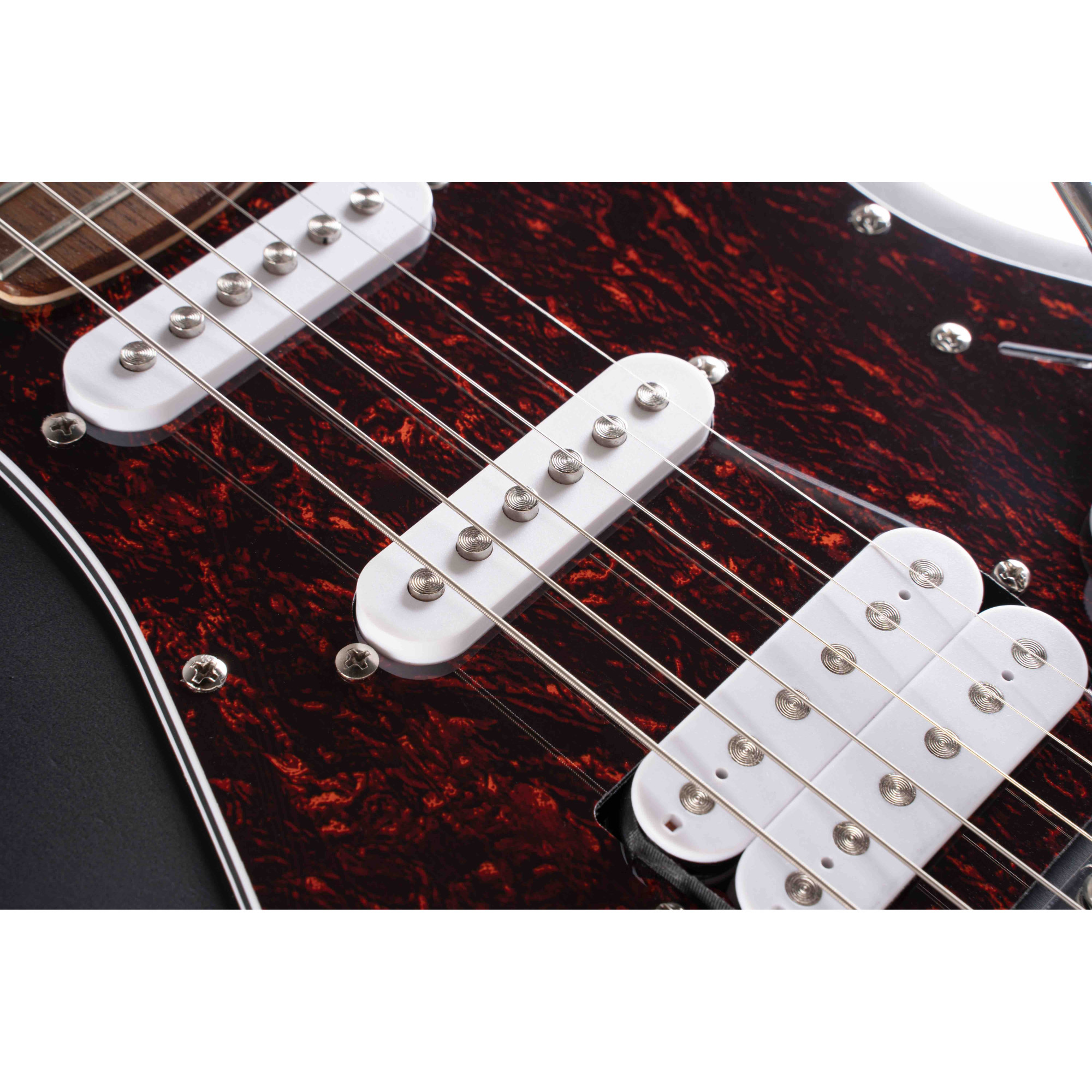 This popular pickup configuration with the 5-way switch provides a wide variety of sounds to cover virtually any musical style. With the middle and neck pickups alone or in combination, the sounds are not only ideal for rhythm playing but for distinctive single- coil lead sounds, while the powerful humbucker pickup in the rear provides fat and heavy tones that are perfect for power riffing or blistering leads.