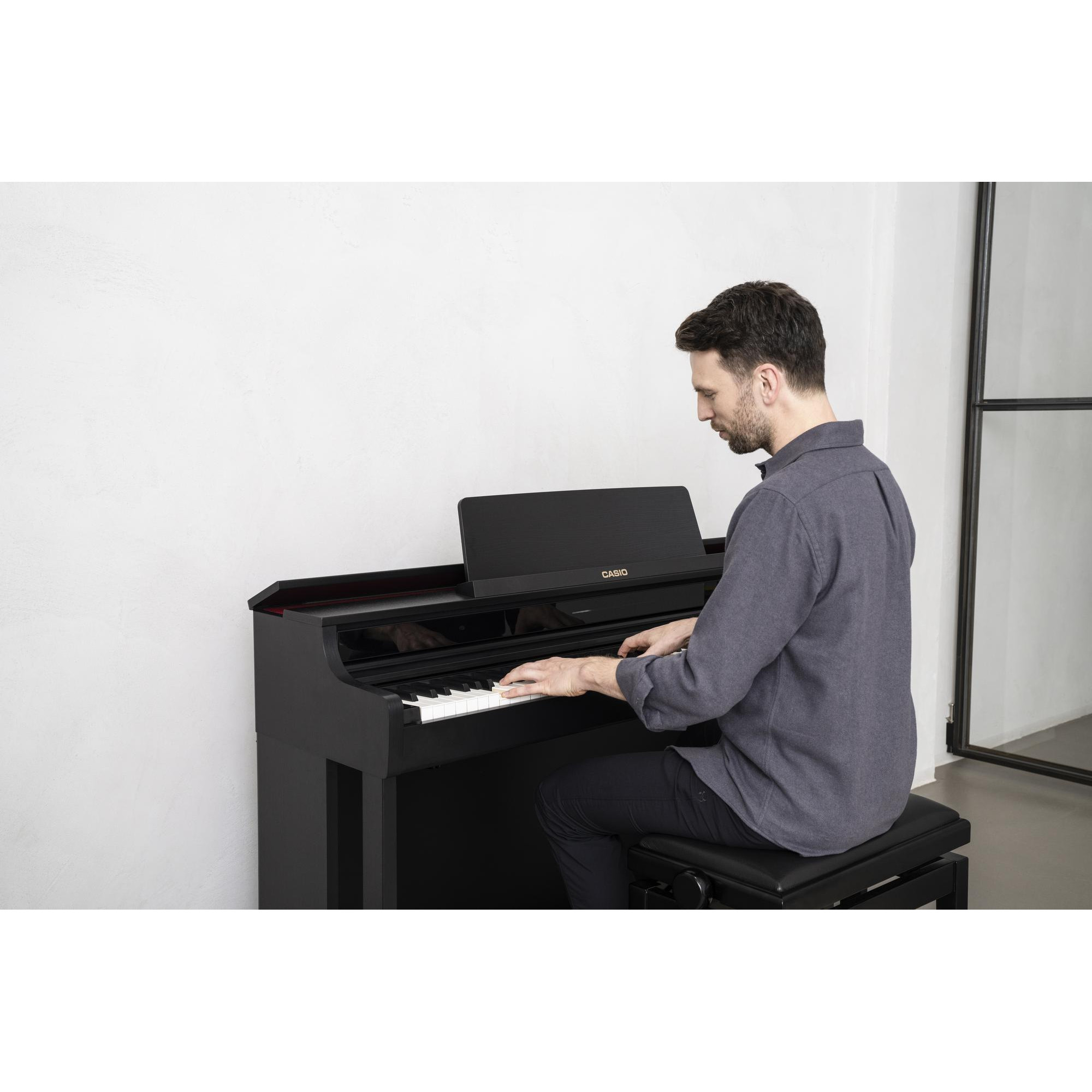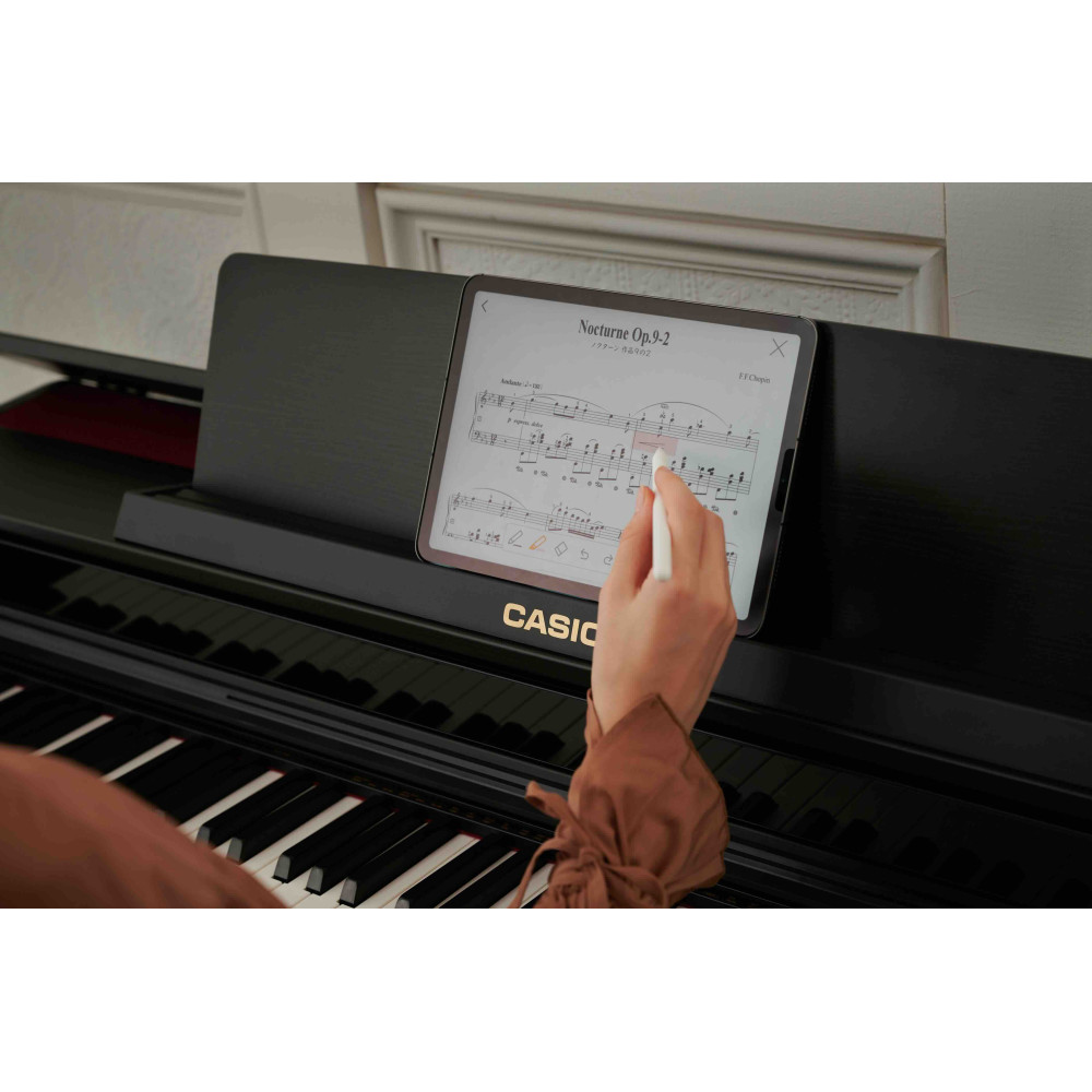Casio AP-550 digitalpiano är en fusion av banbrytande teknologi och förfinad estetik. Dess stilrena design passar in i alla bostadsutrymmen och levererar precision med en Smart Hybrid-tangentmekanism med träklaviatur.
