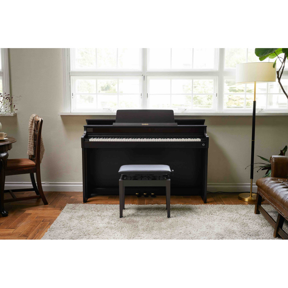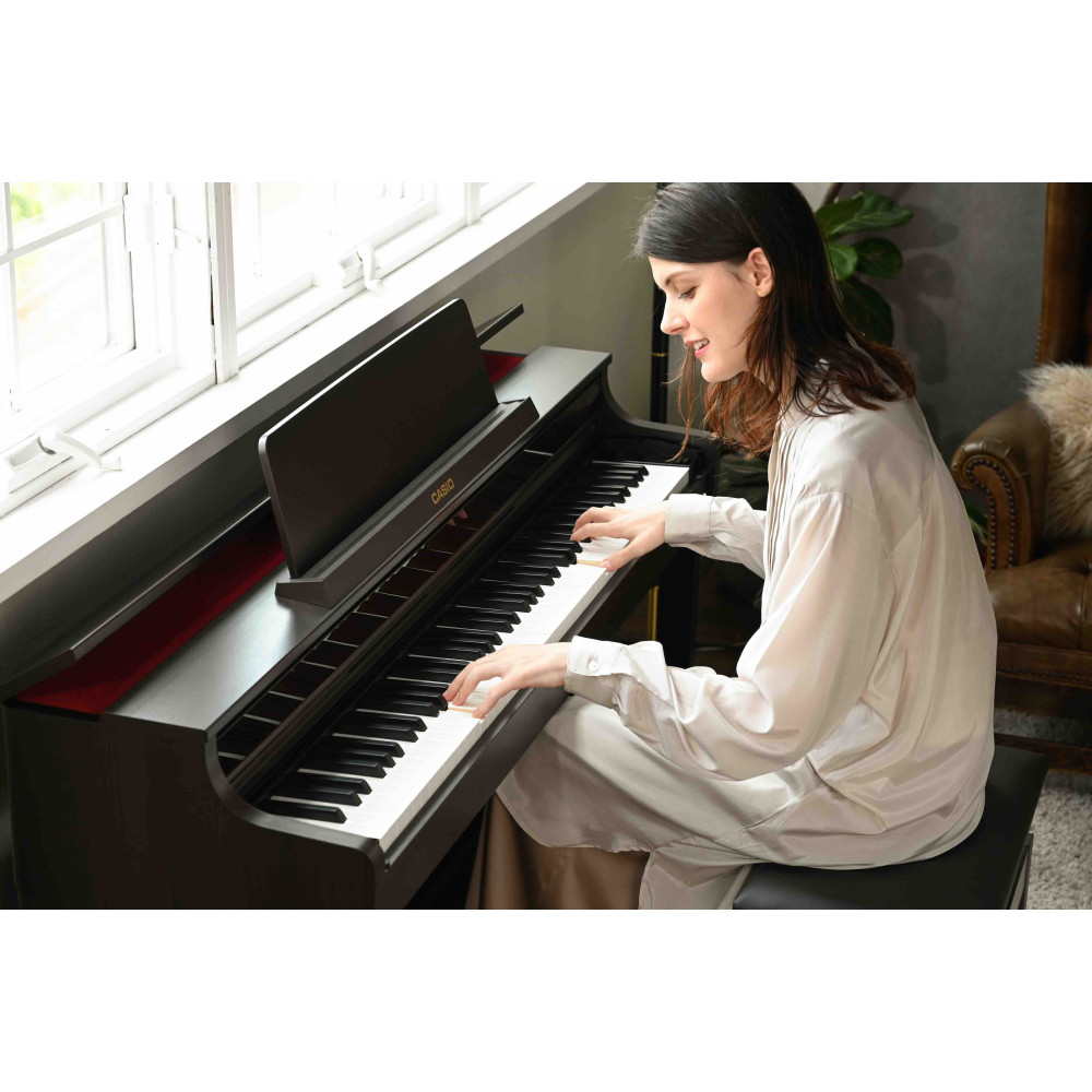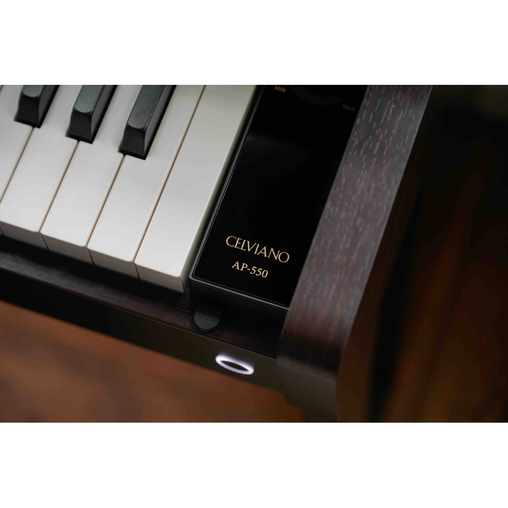 Casio AP-550 digitalpiano är en fusion av banbrytande teknologi och förfinad estetik. Dess stilrena design passar in i alla bostadsutrymmen och levererar precision med en Smart Hybrid-tangentmekanism med träklaviatur.