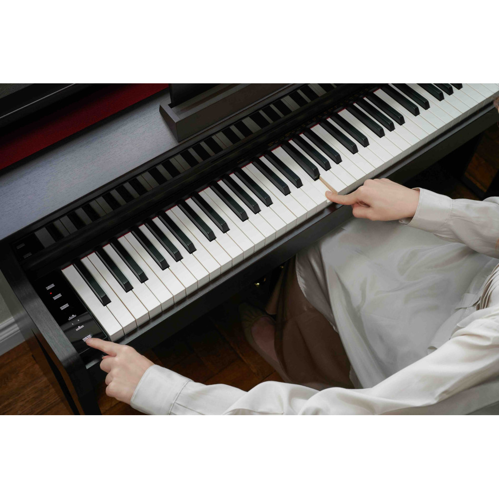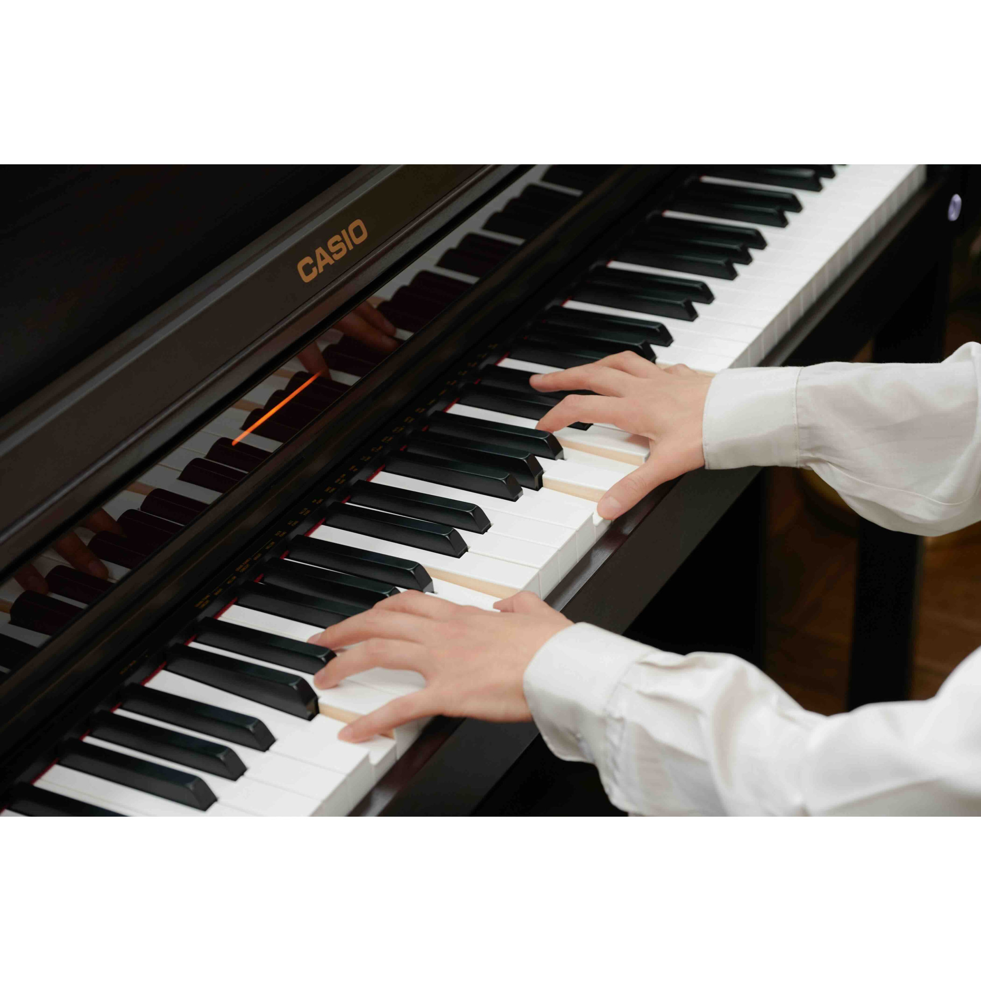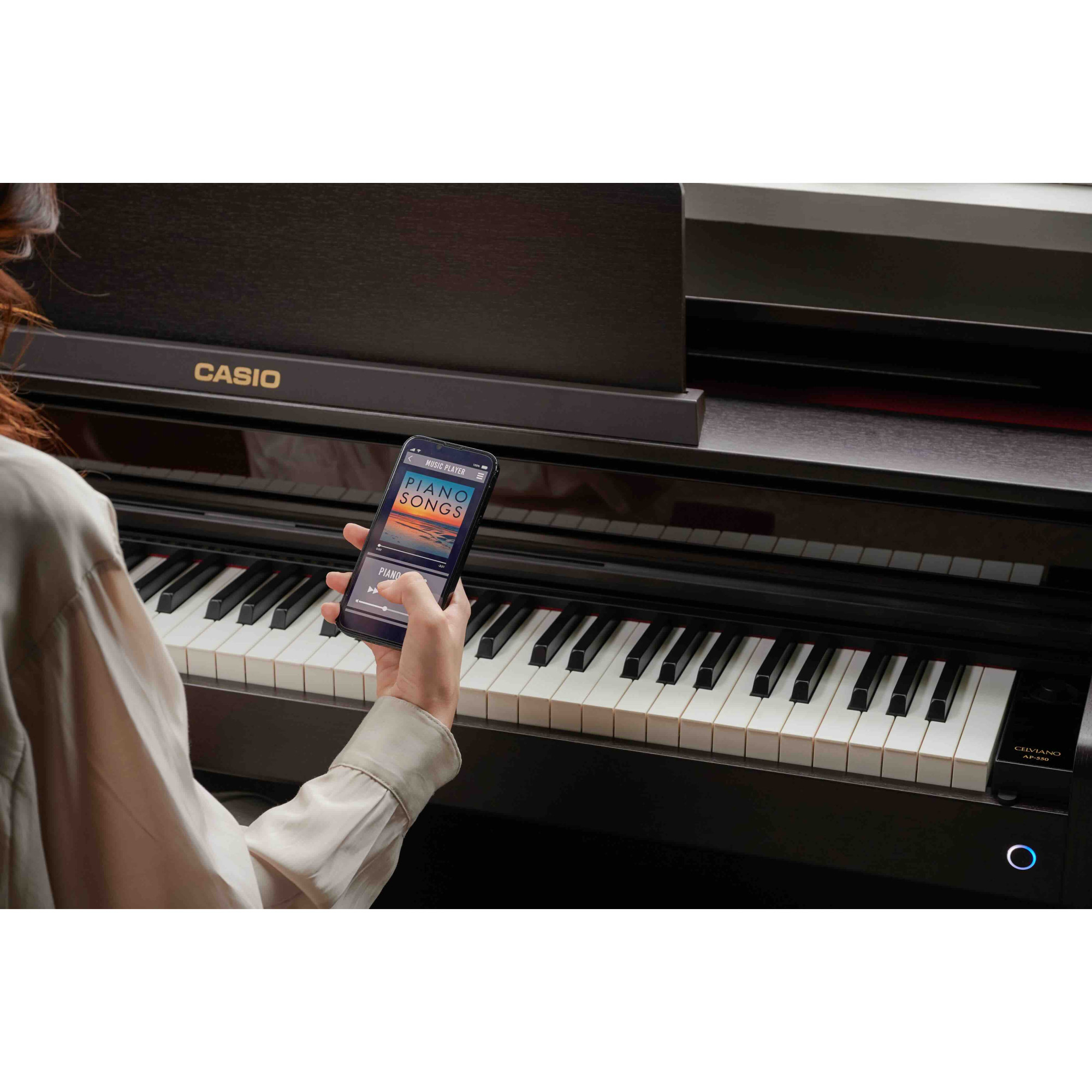 Casio AP-550 digitalpiano är en fusion av banbrytande teknologi och förfinad estetik. Dess stilrena design passar in i alla bostadsutrymmen och levererar precision med en Smart Hybrid-tangentmekanism med träklaviatur.