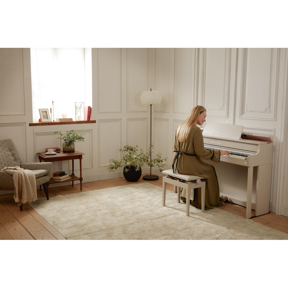 Med en stilren design, Smart Hybrid Hammer Action-tangenter med träklaviatur och ett samarbete med C. Bechstein för autentiskt och fördjupande ljud är Casio AP-750 späckad av innovativa funktioner för att höja ditt musikskapande.