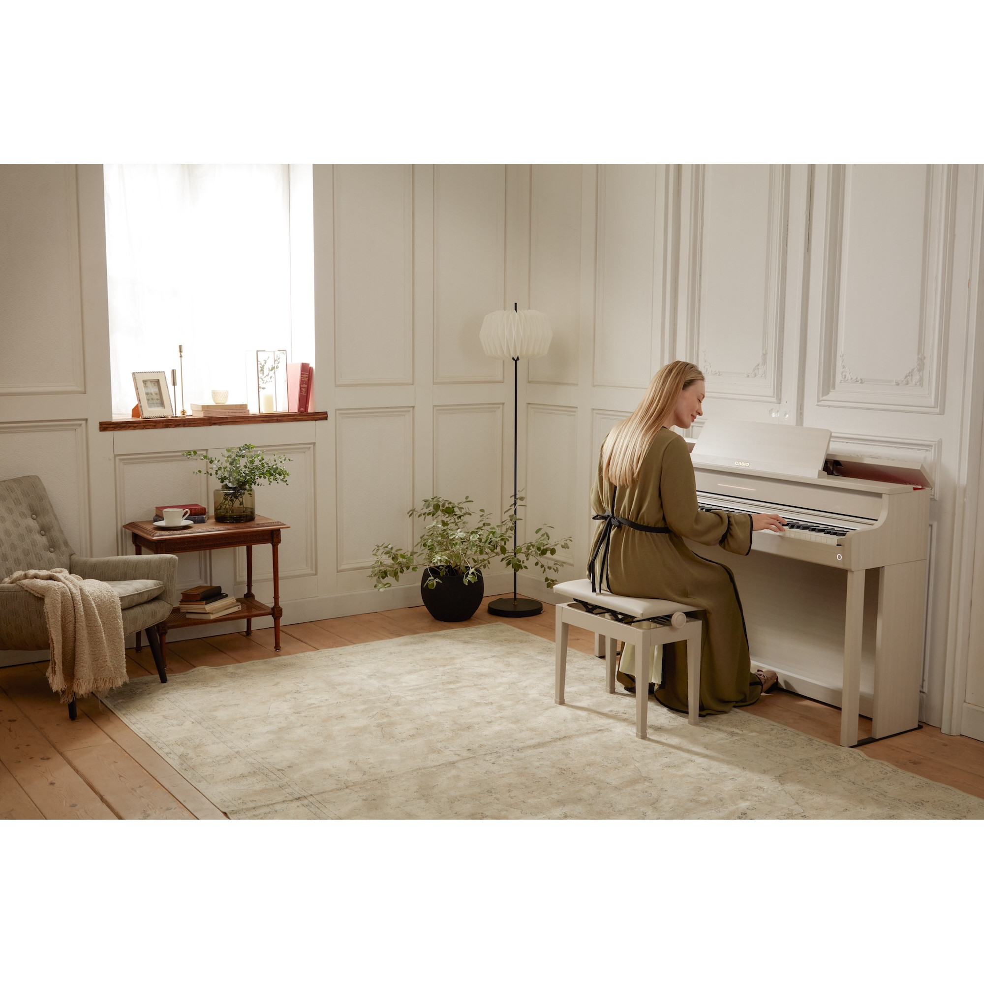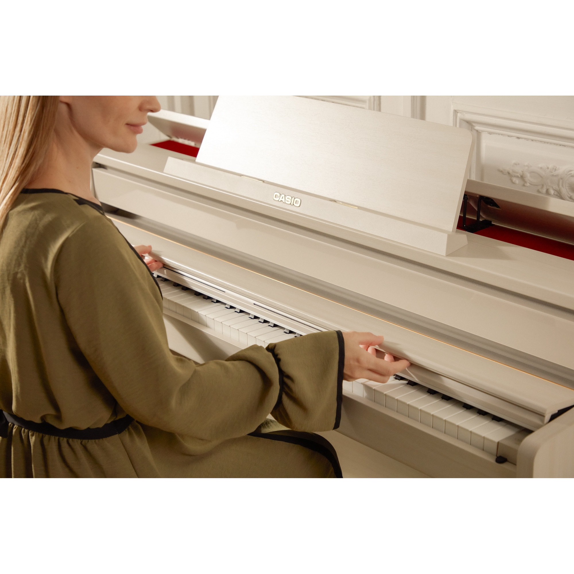 "The AP-750 is a digital piano that delivers a completely new experience by fusing the traditional value of a piano with the innovative value. It pursues the essence of a grand piano cultivated in tradition, and provides high playability for users who want to immerse themselves in the music at home, with an acoustic piano-like styling, immersive natural sound, and expressive keyboard. It also realizes a playing experience that gives new insights and joy with its unique digital technology."