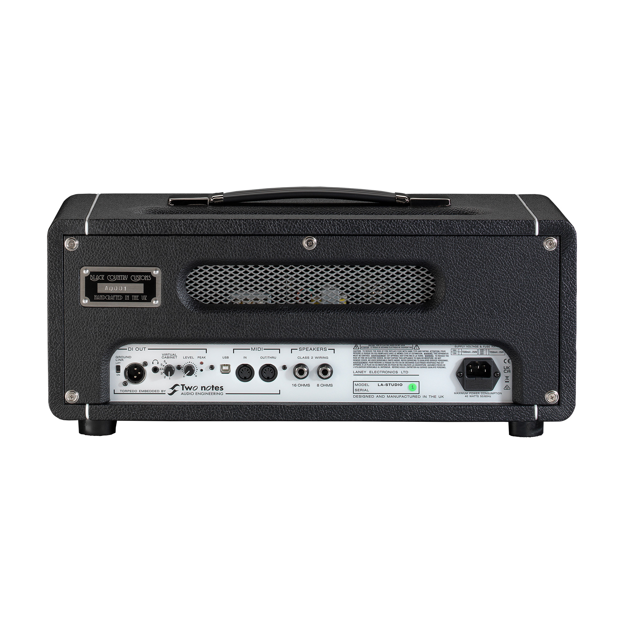 Laney LA-STUDIO är en ny förstärkare från Black Country Customs. En modern tolkning av den legendariska Laney Supergroup från 1969. LA-STUDIO är en Supergroup omarbetad till en studio top med banbrytande teknologi. Med en Two Notes Torpedmodul, är LA-STUDIO en riktig rörförstärkare med alla fördelar och användarvänligheten till en digital PLUGIN. Riktiga heta rör, riktig het ton, riktig känsla och riktig dynamik. LA-STUDIO är en RIKTIG PLUGIN.
