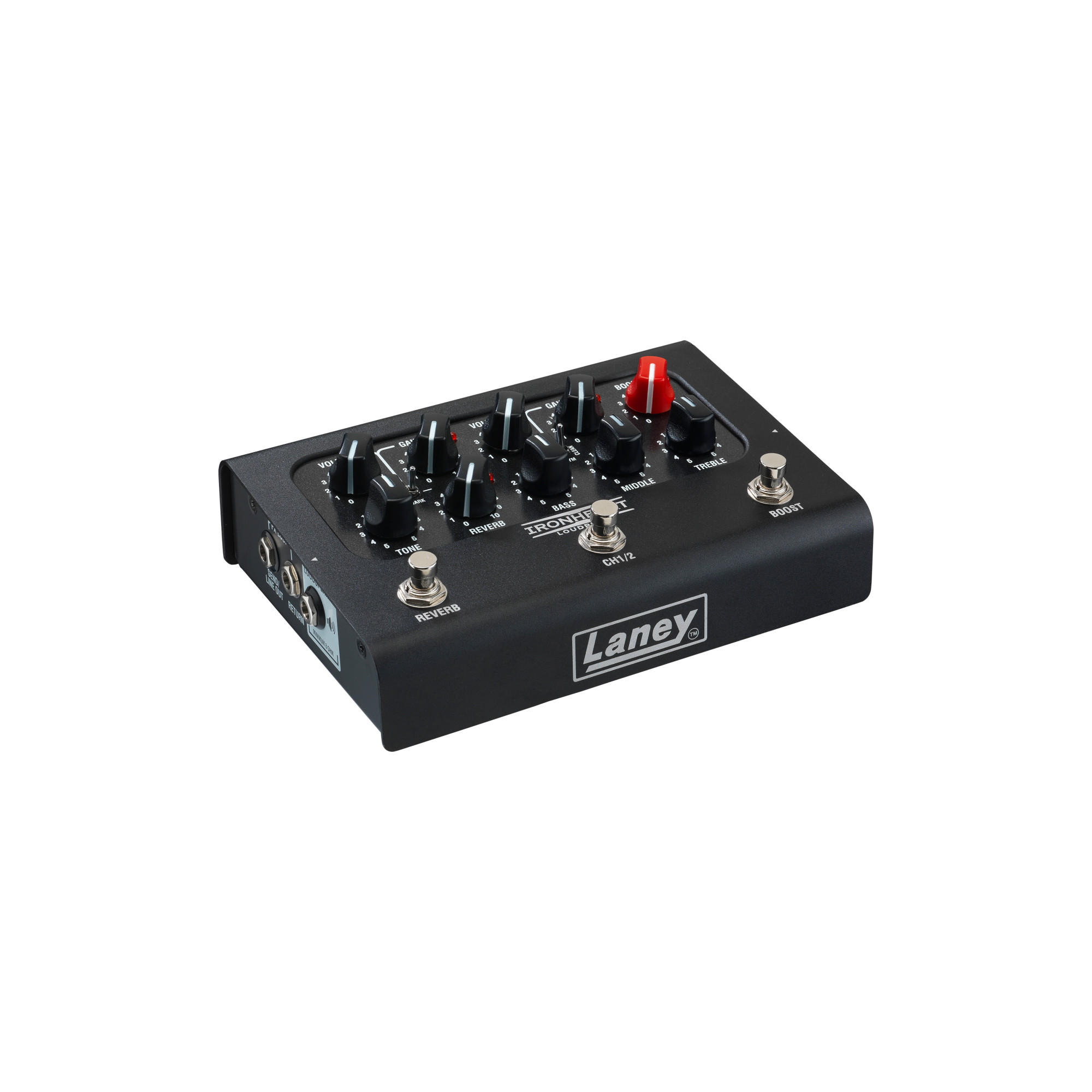 IRONHEART-LOUDPEDAL är tillverkad i Laneys brittiska verkstad -Black Country Customs - och är noggrant konstruerad för att återge den berömda IRONHEART-tonen i en kompakt, analog pedalförstärkarkonfiguration.