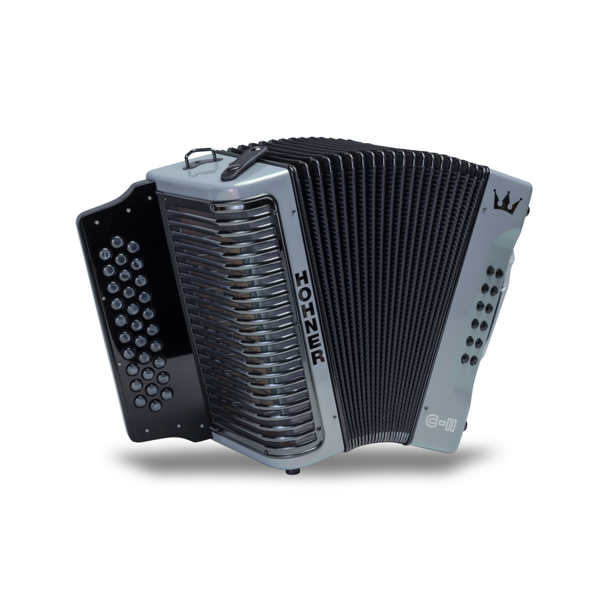 The new and improved Corona model the C-II has been modified to achieve above standard robust performance  by upgrading the soundboard and baseboard with aluminum, yet maintaining the signature Corona sound that is expected from this iconic model.  New features, new look, and an incredible sound - everything you expect from a professional HOHNER accordion.   The C-II comes in four unique colors:  Green To Gold, Red To Gold, Silver Rainbow and White Rainbow.