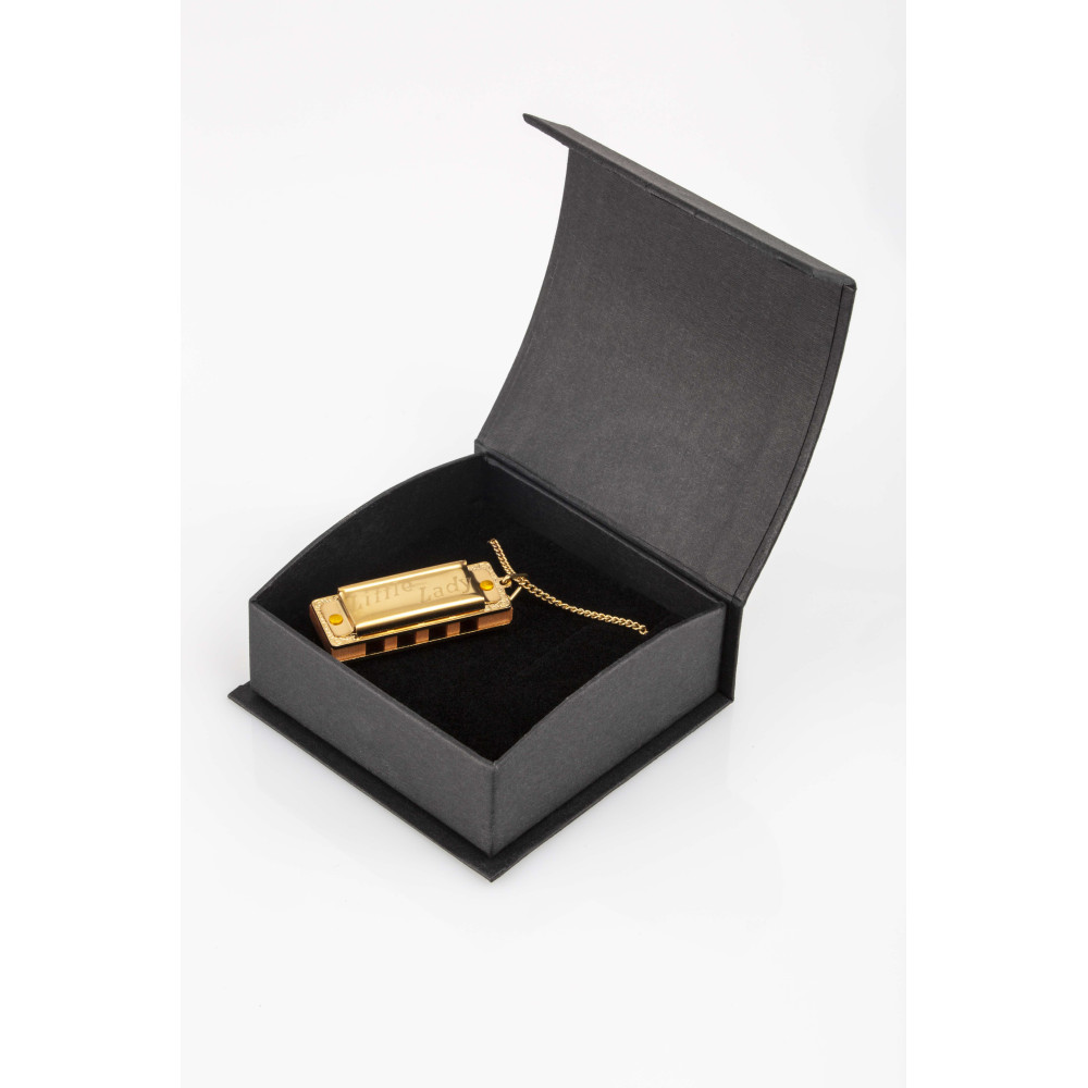 It’s rude to discuss a lady’s age, so we won’t. But we can tell you that the Little Lady is not just the smallest playable harmonica in the world, but also the first instrument to be played in space. She’s also a beautiful piece of jewelry when you gold-plate her, so we did just that. And who can claim that they can make music with their necklace? The size is no indication for the beautiful sound the Little Lady produces.