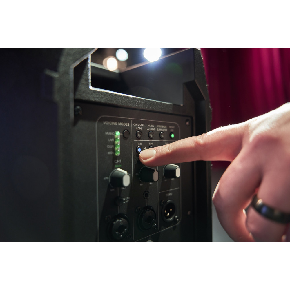 - Link wirelessly with a second Thump210XT speaker