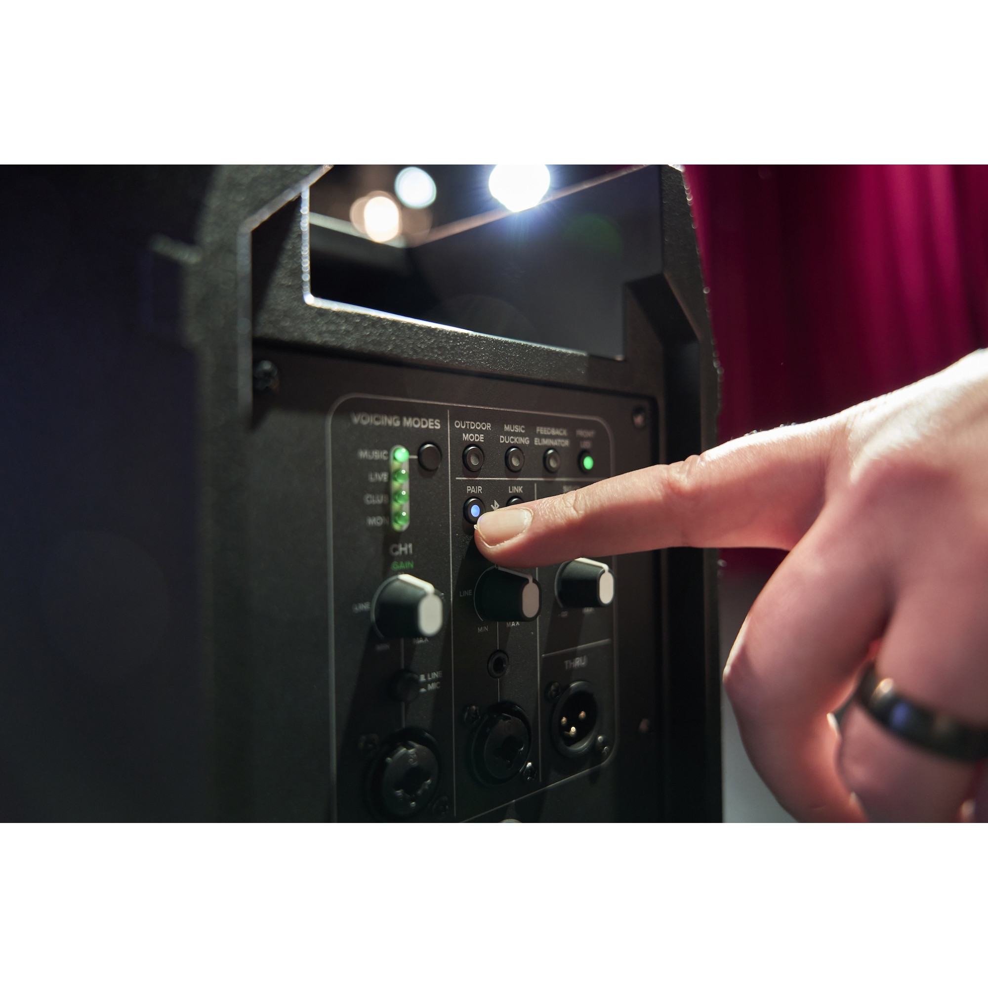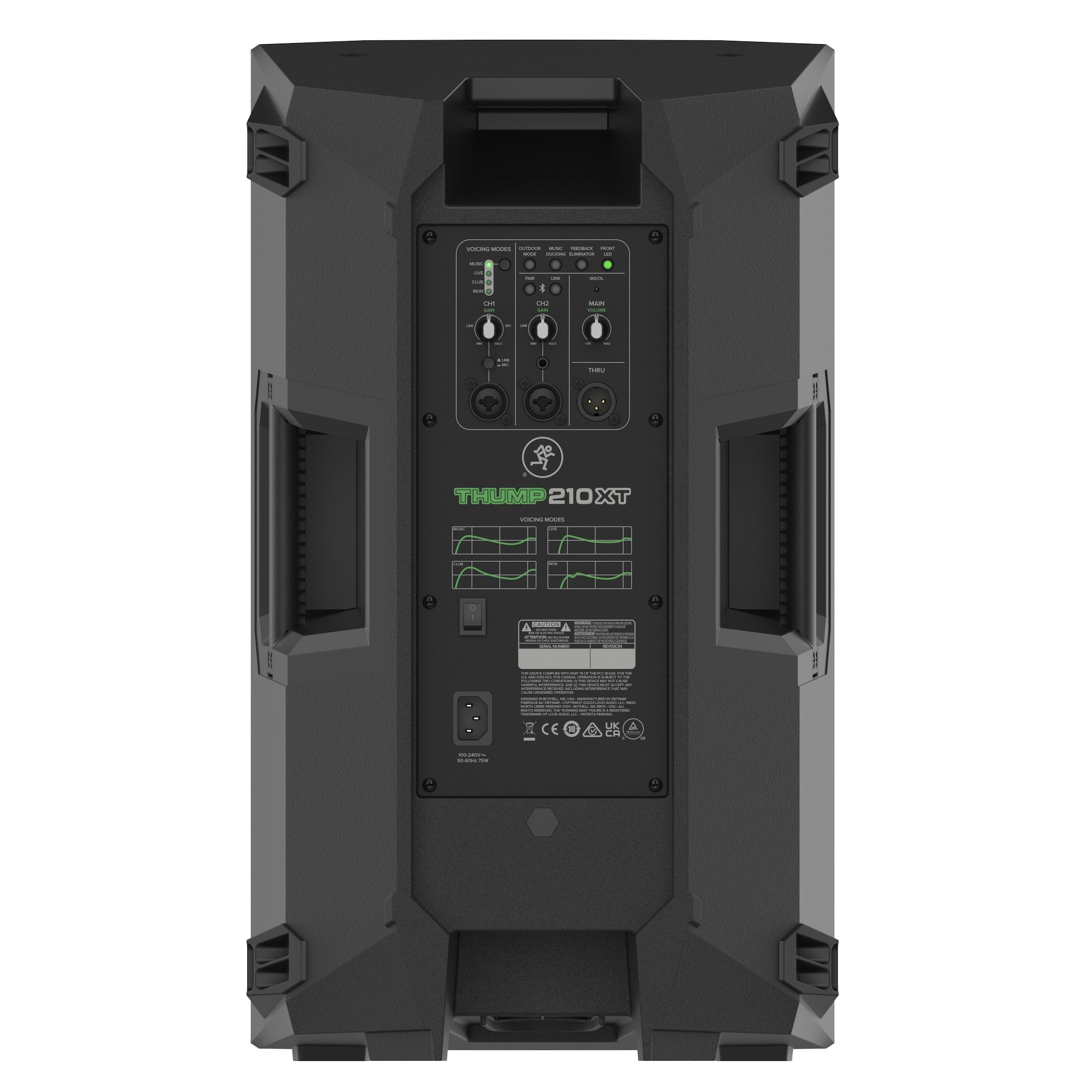 Instantly optimize Thump 210XT for how you use it with 4 application-specific voicing modes: “Music” to enhance pre-recorded music, “Live” for general sound reinforcement, “Club” for a nice low end punch, and “Monitor” for use as a floor wedge.