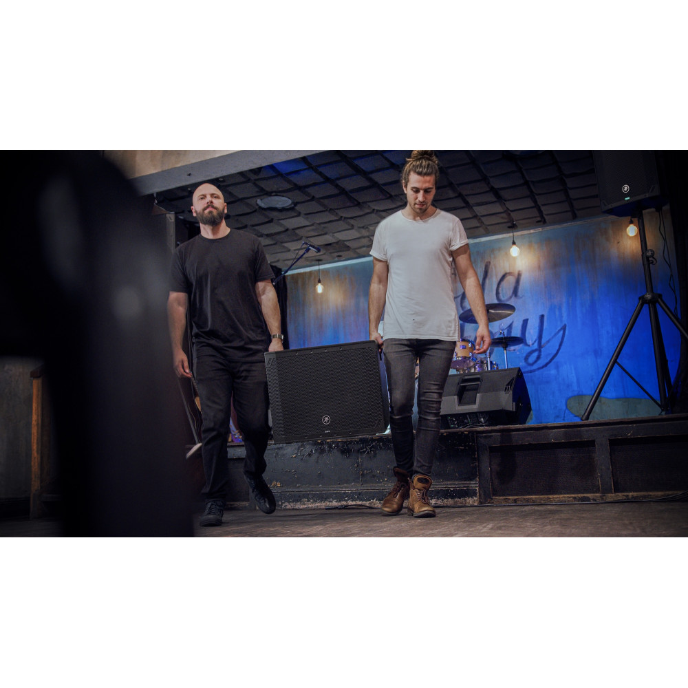 Stack your pole-mountable Thump loudspeaker above Thump18Sv4 using the dedicated Mackie SPM400 speaker pole (sold separately) to create an all-in-one powerhouse PA system, projecting sound across the entire area while keeping floor space clear for getting down.