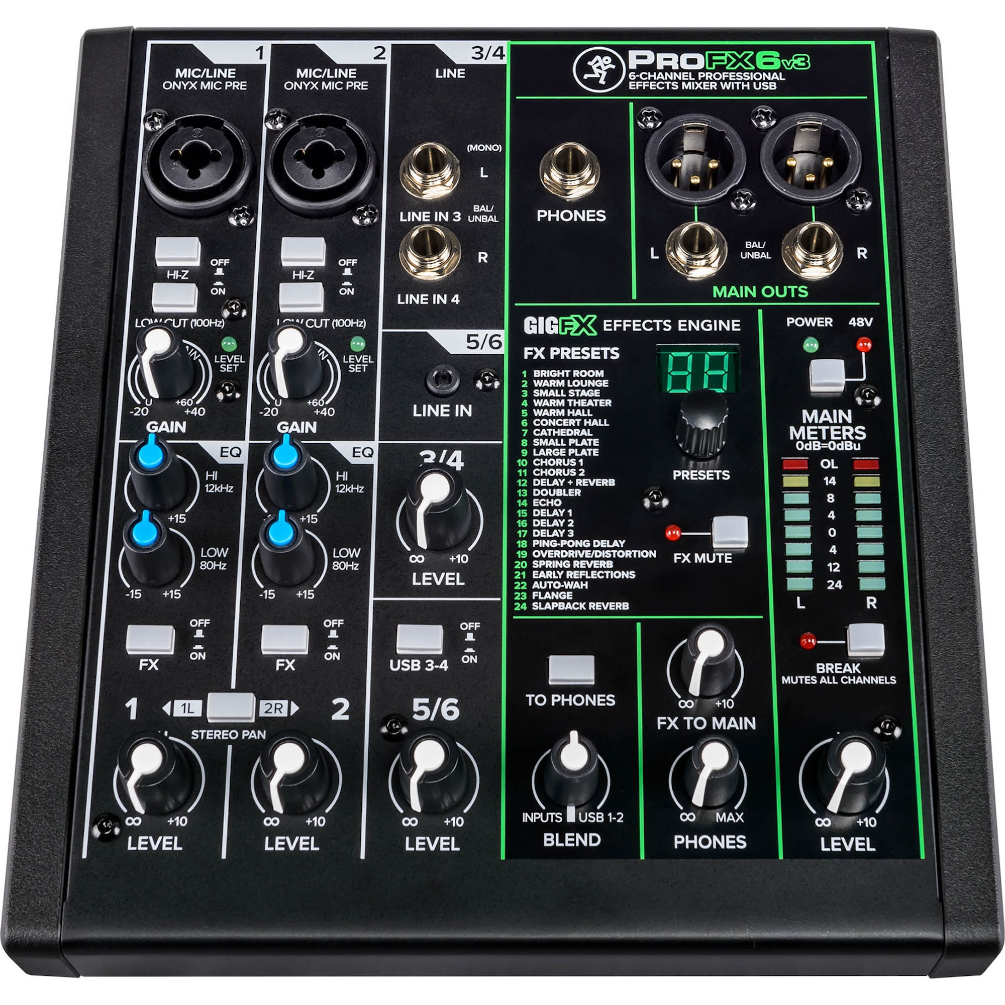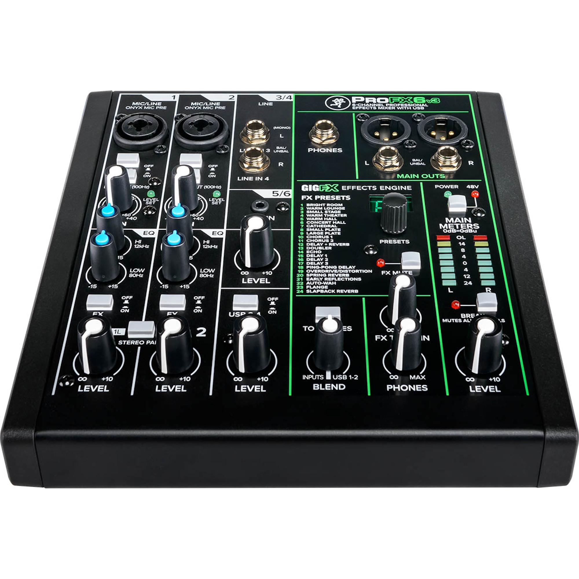 Experience the best-in-class series of professional analog USB mixers with effects. The Mackie ProFX6v3 is a 6-channel mixer for musicians and content creators who want studio-quality performance right on their desktop.