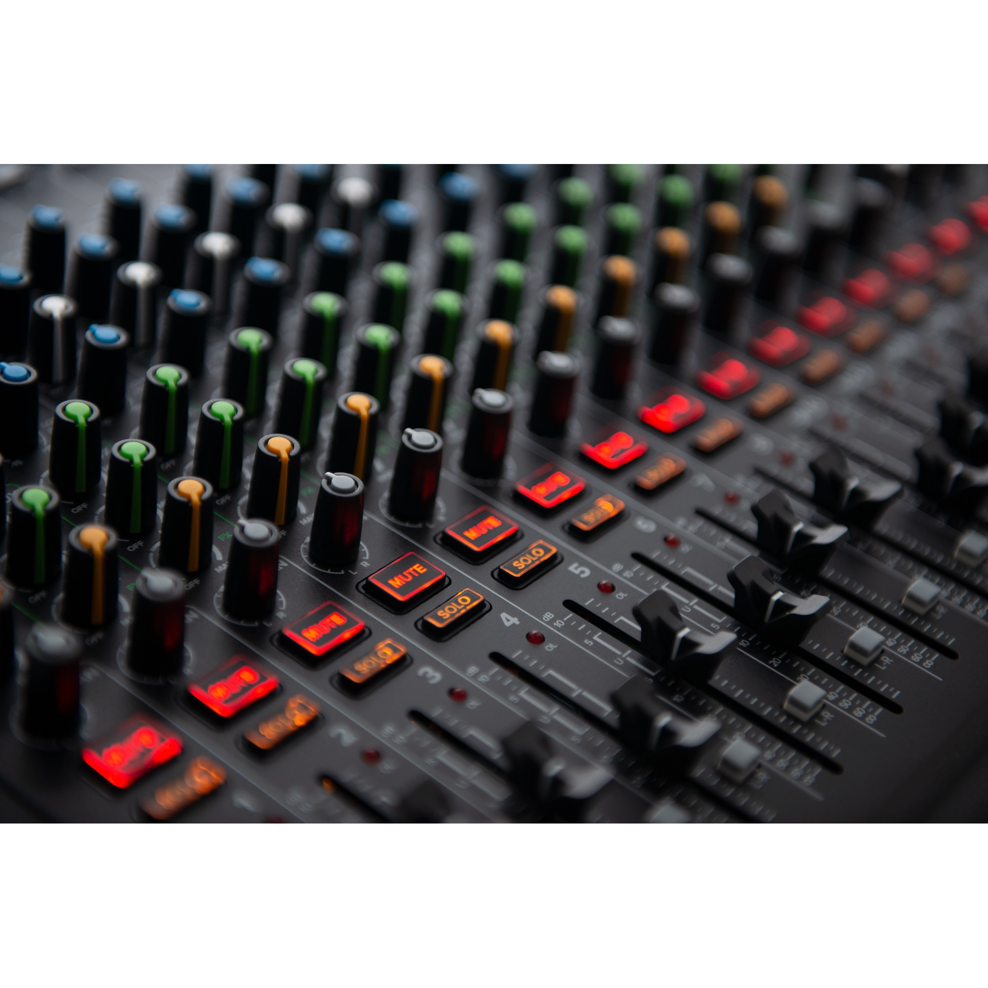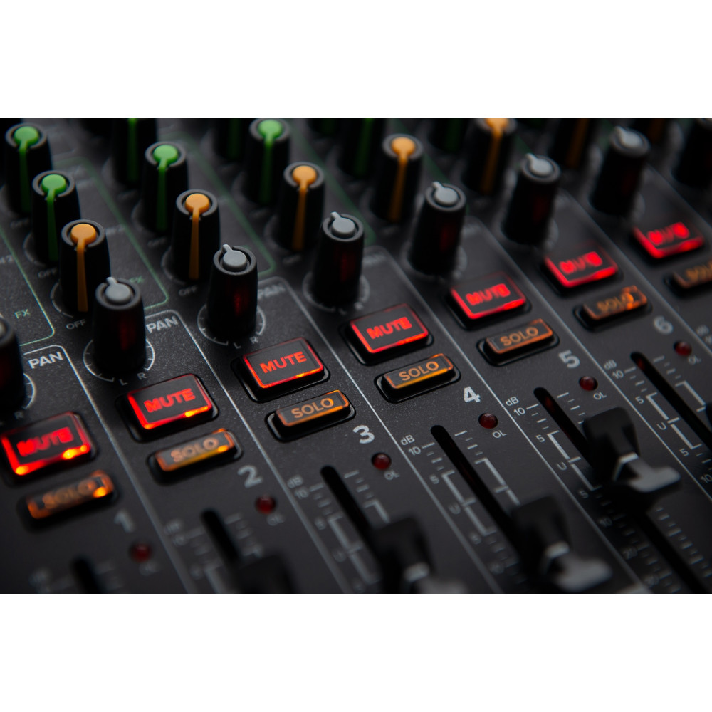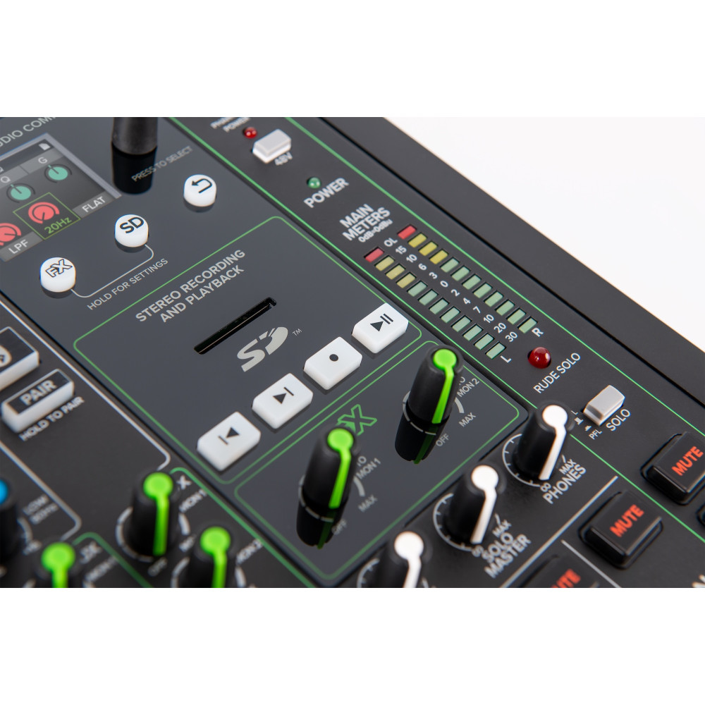 Onyx Series mixers feature bright, easy to read buttons that shine bright in the darkest places so you will always know whats going on with your mix. On top of that, the full-color display of Studio Command makes it easy to adjust effects and SD card recording/playback.