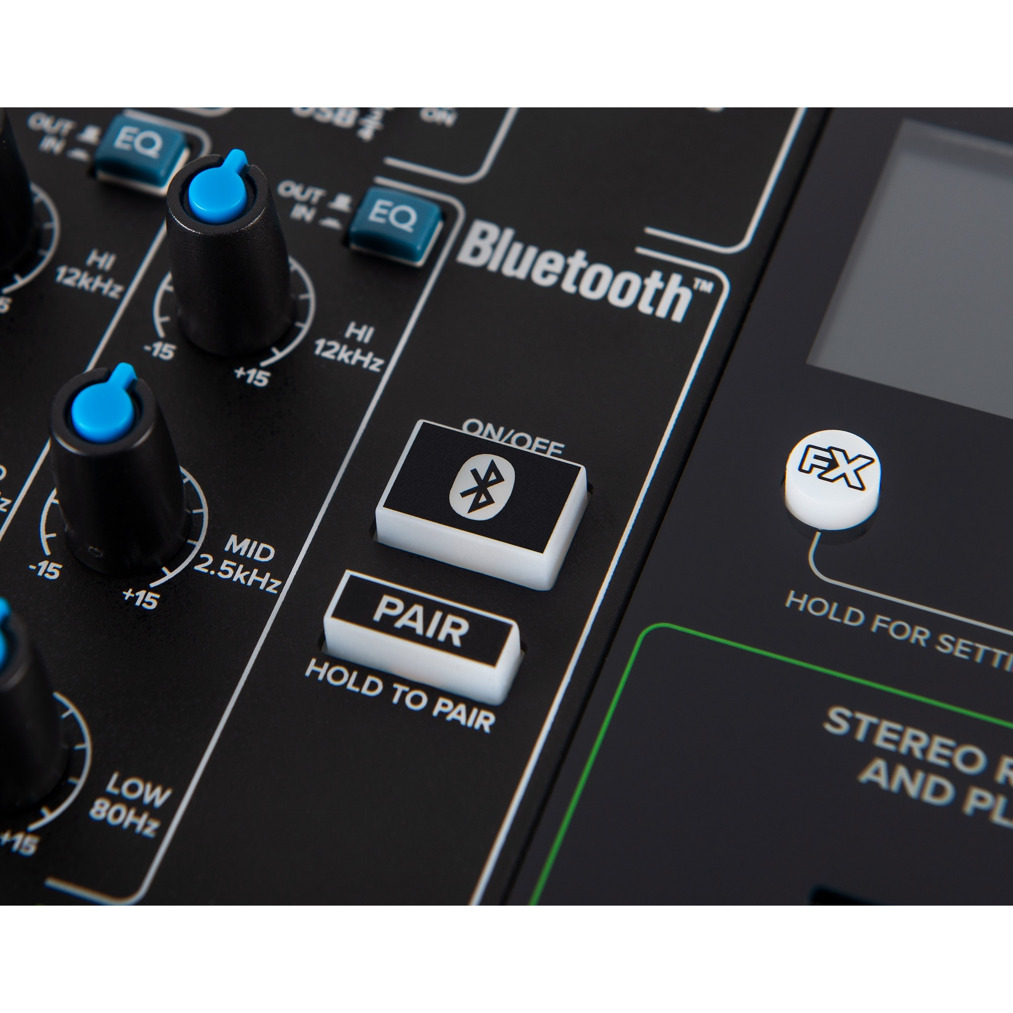 Bluetooth is a gamechanger on an analog mixer. Pair a compatible device via Bluetooth to stream audio through aux sends or the main mix. Bluetooth compatibility allows you to compare mix reference tracks or play background music when you need it.