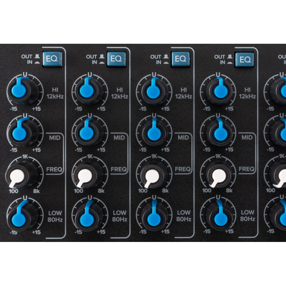 The Mackie Onyx8 features an enhanced 3-Band “British Style” Perkins EQ based on the same circuit used on classic mixing consoles from the ‘60s and ‘70s. This version designed by Mackie offers greater filter control, minimum phase shift and allows you to pinpoint specific frequency ranges.