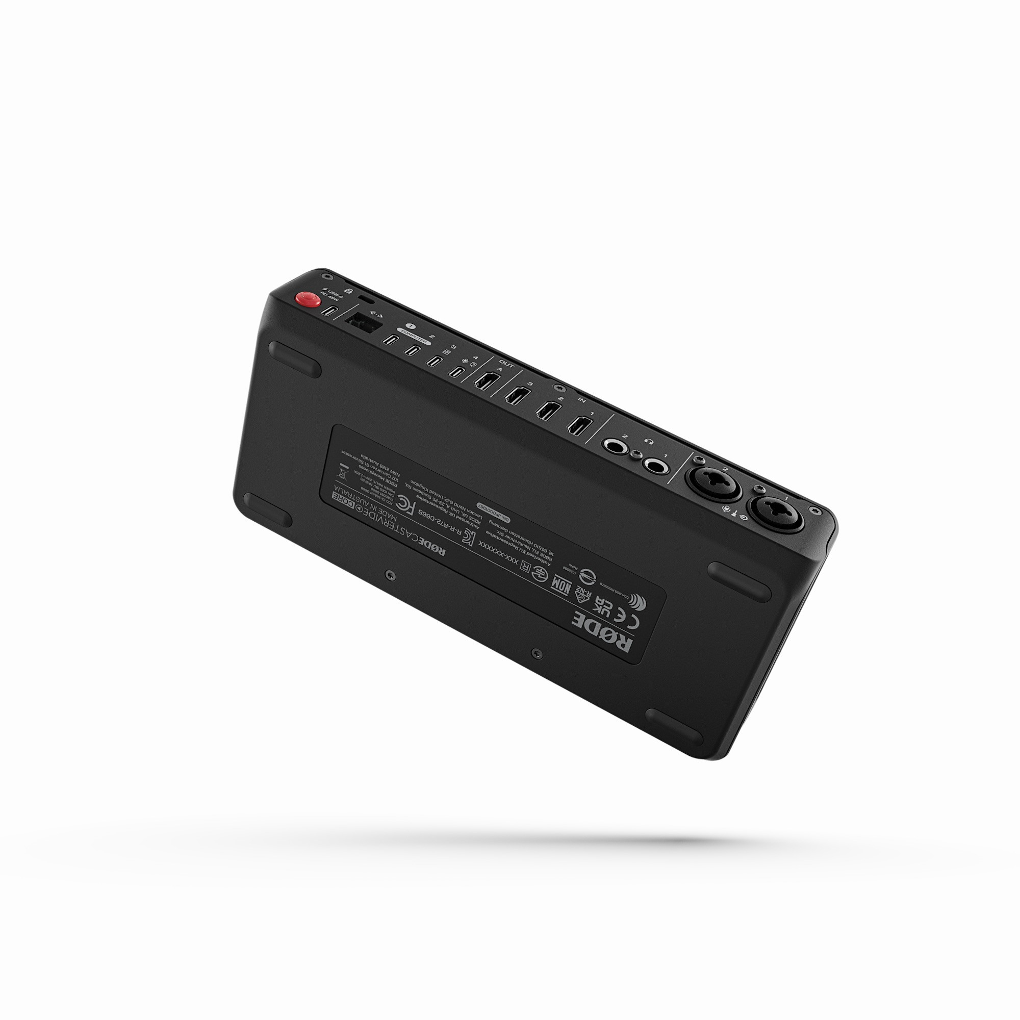 • Remote control via RØDECaster App, user-assignable graphics and media, custom scene building, audio mixing and effects, and other advanced configuration