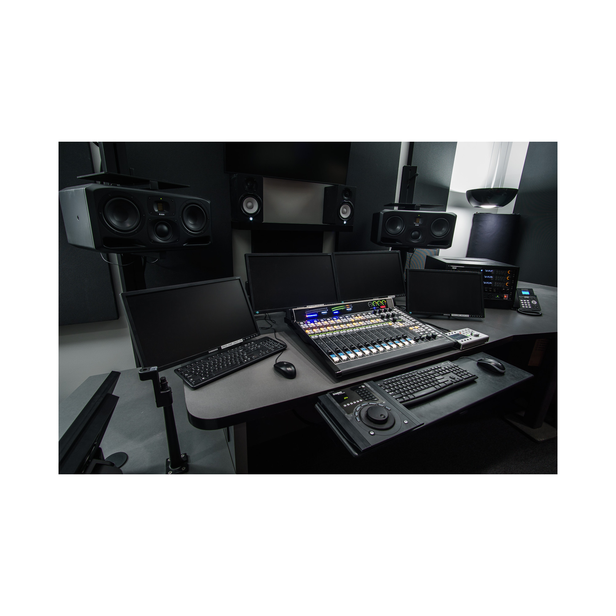 The dual 7-inch bass drivers, powered by a 500 W Class D amplifier, offer flawless reproduction of frequencies all the way down to 30 Hz. ADAM Audio’s newly developed DCH, a 4-inch hybrid dome/cone mid-range driver, is powered by a 300 W Class D amplifier and handles audio above 250 Hz and below 3 kHz, its leading-edge hybrid design offering the sonic advantages of both cone and soft-dome drivers in a single, one-piece unit. Frequencies above 3 kHz are routed to the innovative combination of the S-ART treble driver (each handmade at ADAM Audio’s Berlin factory), the new precision HPS waveguide, and a 50 W Class A/B amplifier. The result of all this innovation is a beautifully transparent three-dimensional soundscape, with an extensive sweet spot.