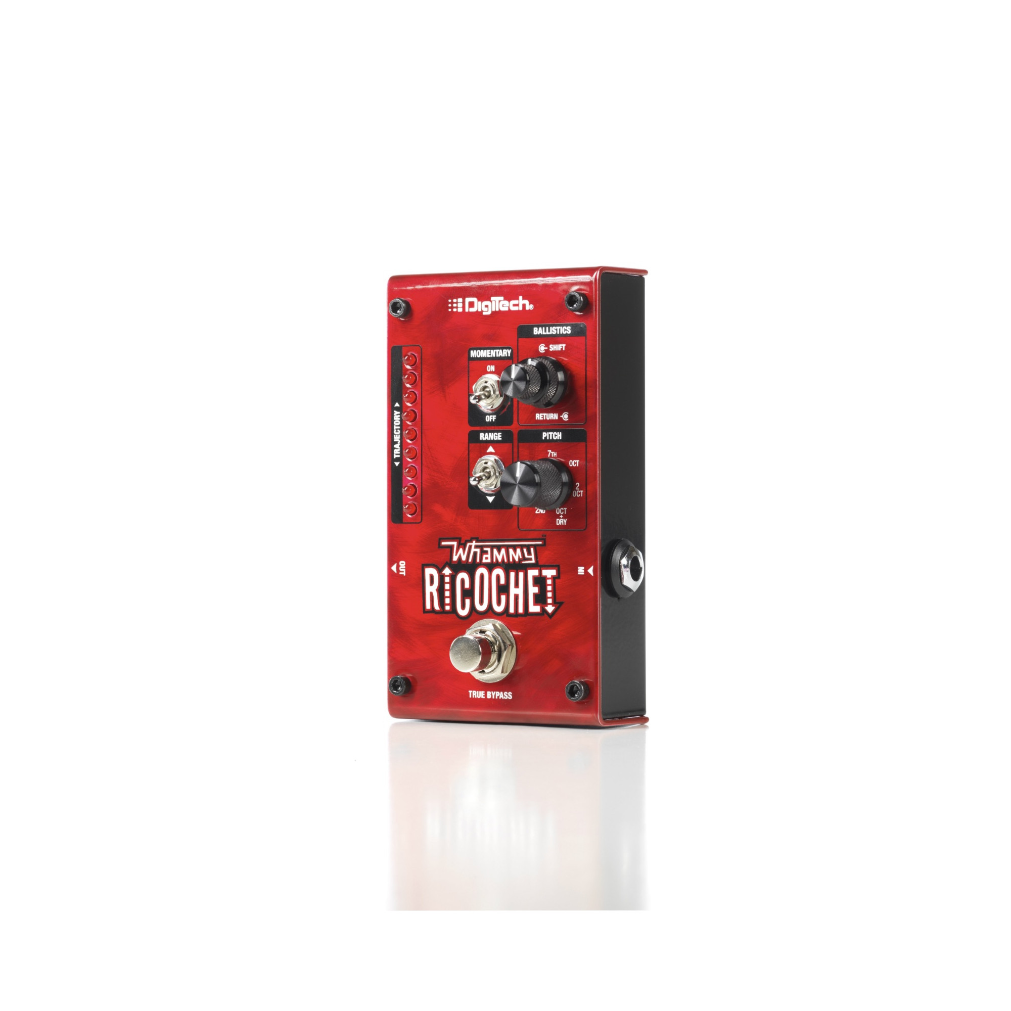 The Whammy Ricochet also has latching footswitch mode so you can rise or fall to pitch and stay there, and an LED ladder that shows your shift trajectory at all times.