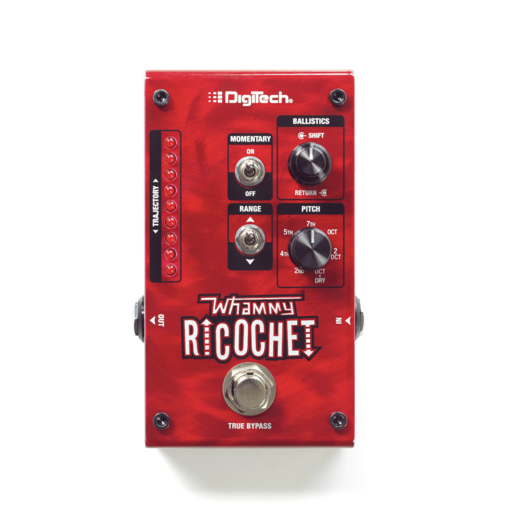 The Whammy Ricochet lets you bounce your playing up or down in pitch in controlled or crazy shifts. A momentary switch and customizable independent rise and fall time ballistics, allow you to get the Whammy action you know and love without the use of a treadle. Just hold your foot on the footswitch and let the Ricochet do the rest. Seven pitch selections – 2nd, 4th, 5th, 7th, Octave, Double Octave, and Octave+Dry, as well as a toggle to select up or down for the selected pitch.