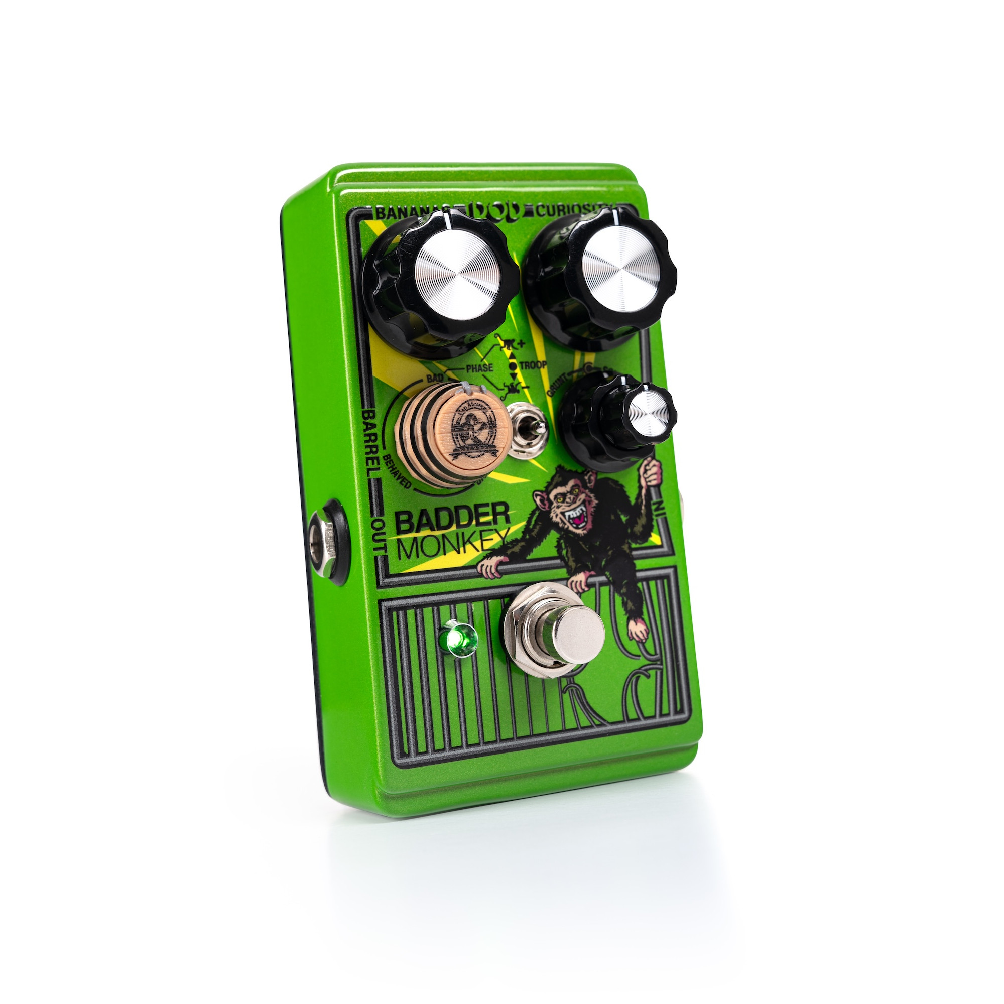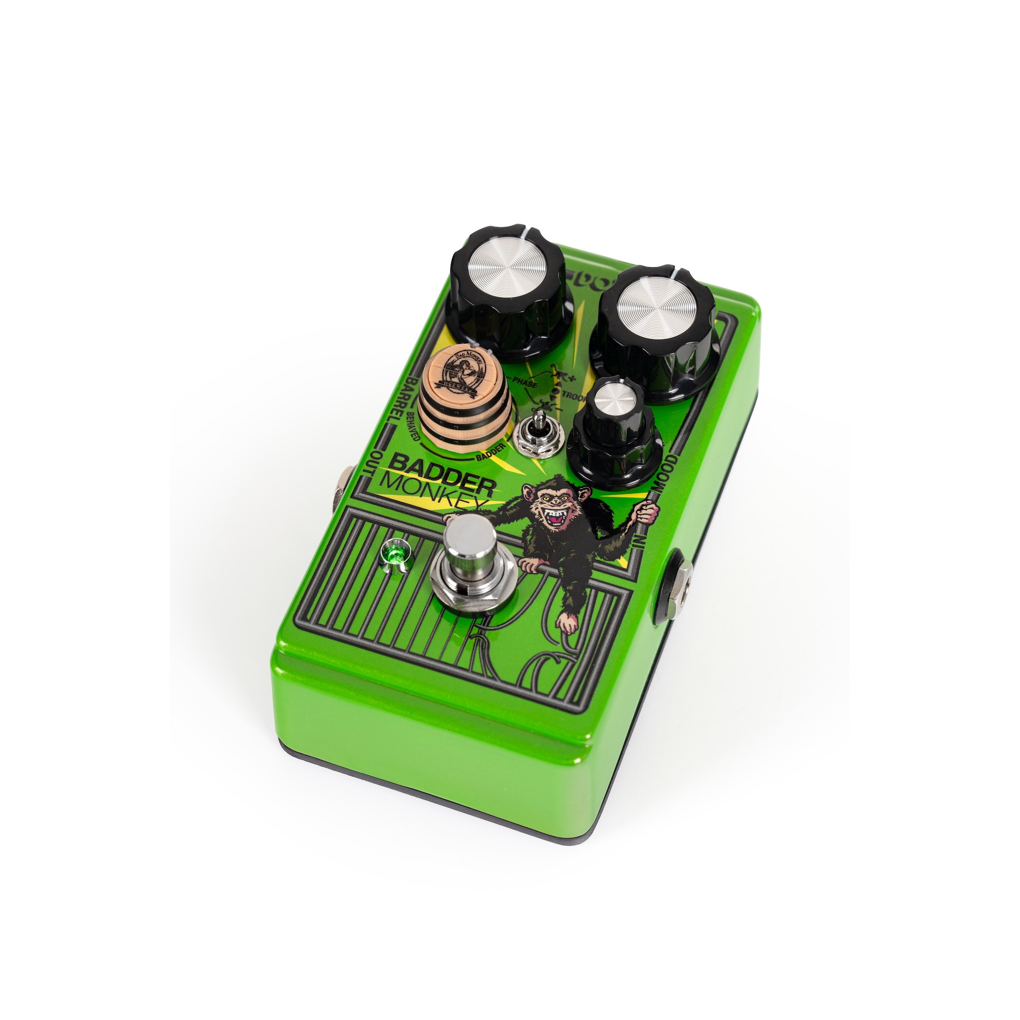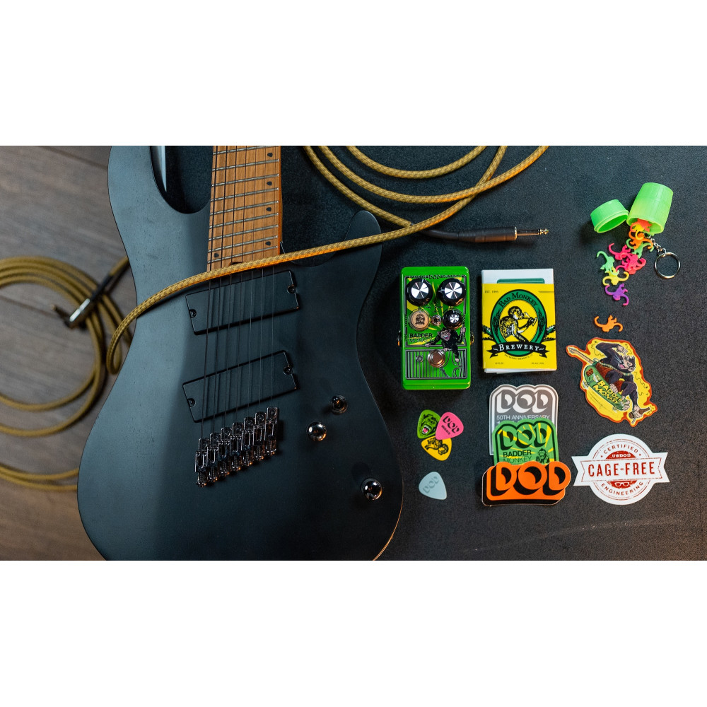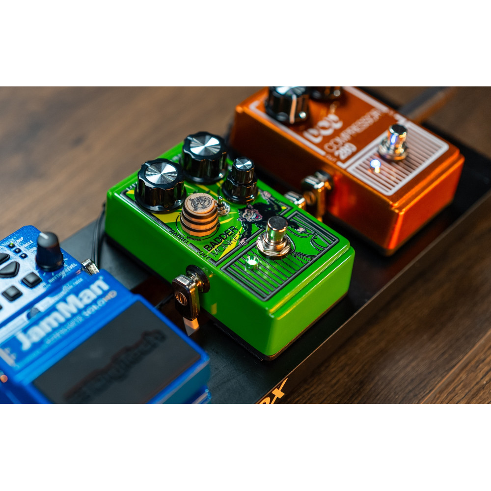 It not only includes a faithful reproduction of the original circuit and sound but far exceeds its predecessor in features and versatility. From its three completely independent Behaved™, Bad™, and Badder™ overdrive circuits giving you three pedals in one, to its unique parallel blending enabled by the patent-pending Barrel Control™, further enhanced by optional out-of-phase combinations, to the all-three-in-parallel Troop™mode, the Badder Monkey™ represents unheard-of variability in an affordable compact overdrive pedal!