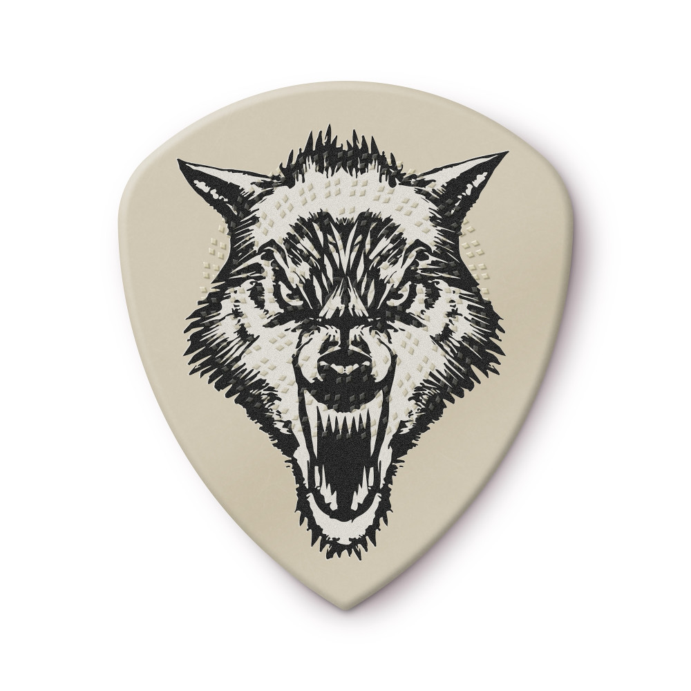 “The White Fang Pick has amazing grip when sweating from heavy riffing, and a smaller profile to go faster,” he says. “Plus, the white is easier to see when they get thrown into the crowd.”