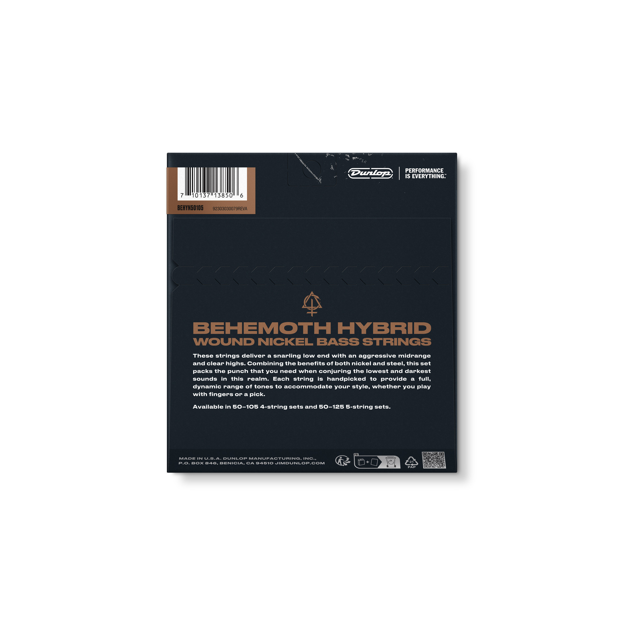 Behemoth Hybrid Wound Nickel Bass Strings deliver a snarling low end with an aggressive midrange and clear highs. Combining the benefits of both nickel and steel, this set packs the punch that you need when conjuring the lowest and darkest sounds in this realm. Each string is handpicked to provide a full, dynamic range of tones to accommodate your style, whether you play with fingers or a pick.
