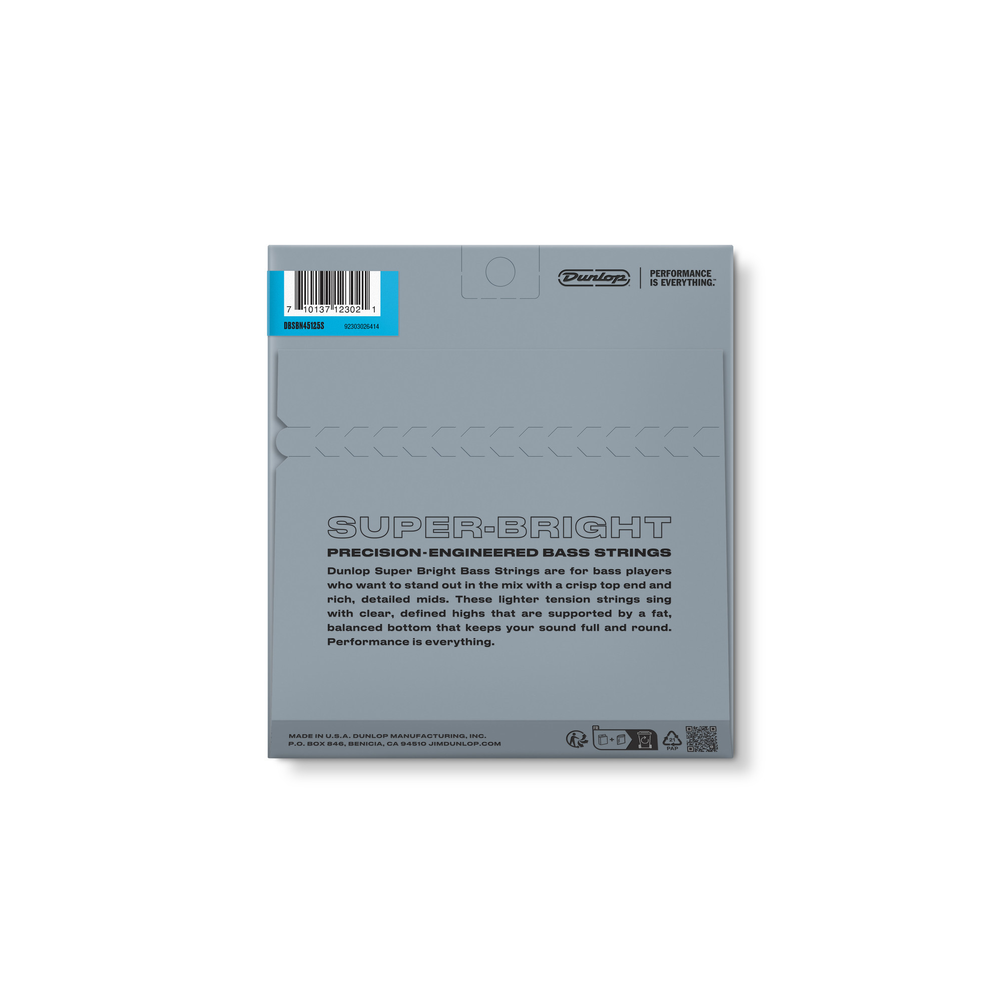 Dunlop Super Bright Bass Strings put your sound front and center with a crisp, vibrant top end and a fat bottom with a focused fundamental. Carefully designed by our team of bass players and tested by pros on the road, these strings sing with clear, defined highs that are supported by a fat, balanced bottom that keeps your sound full and round. Lighter tension provides a superior response to playing nuances, and the silky smooth feel of each string lets you get up and down the fretboard with ease and comfort. With extra-long life and exceptional string to string balance, Dunlop Super Bright Bass Strings allow the natural voice of your bass to come through.