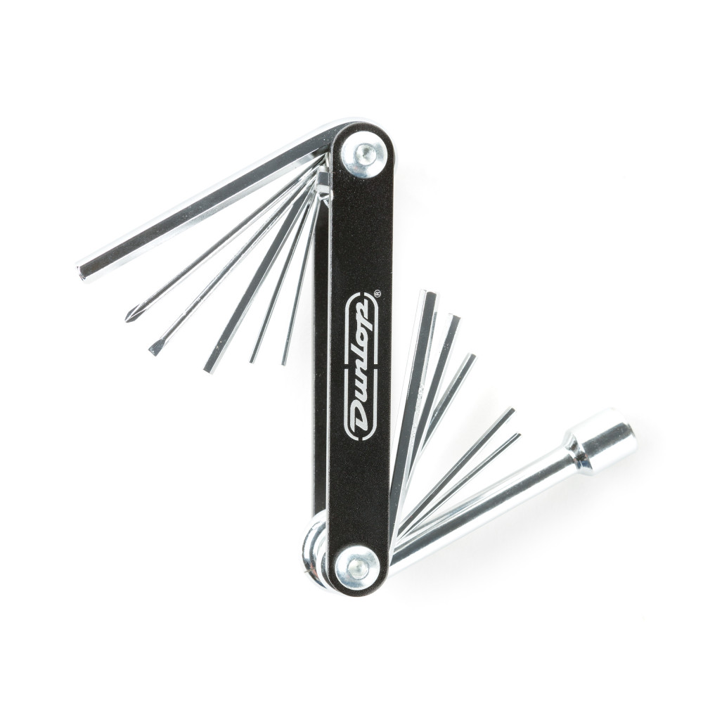 The Dunlop Multi-Tool features numerous attachments to help you keep your instrument in shape, from adjusting your truss rod to removing your pickguard.