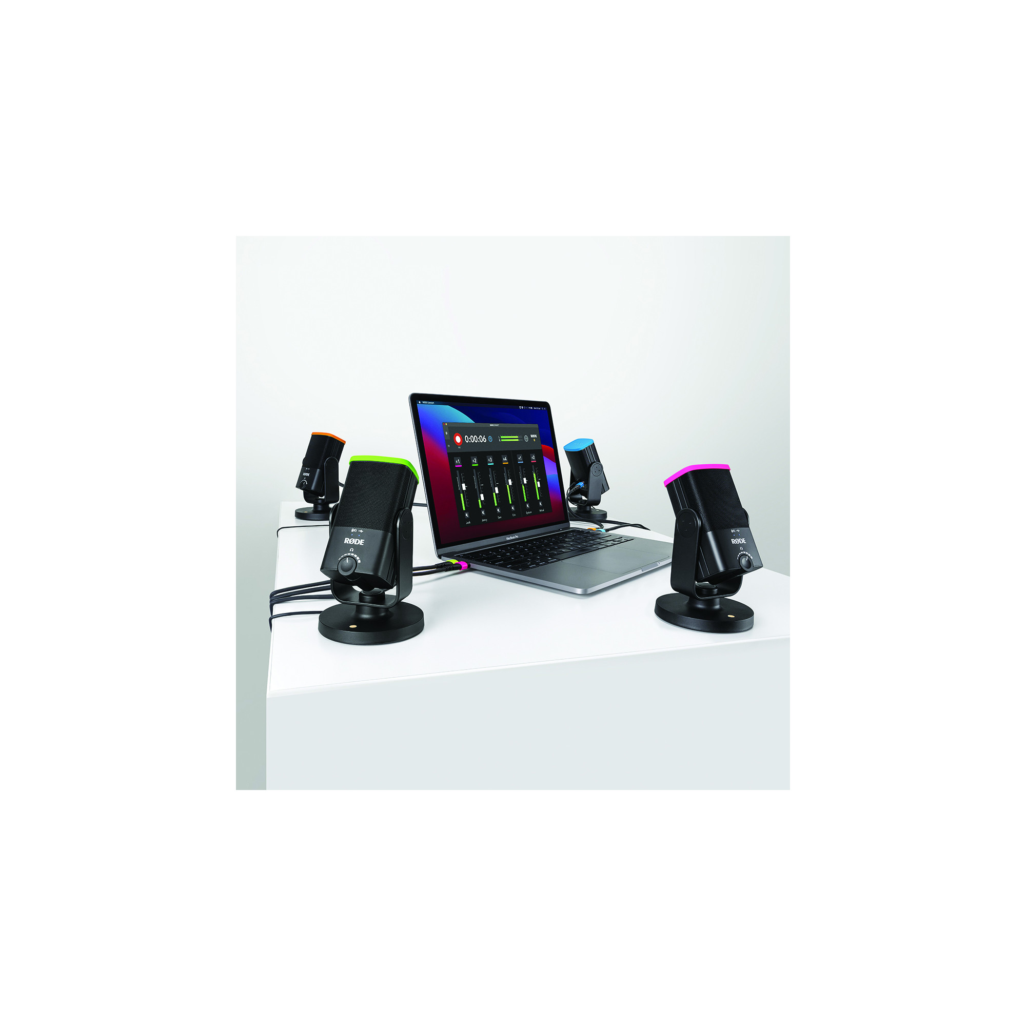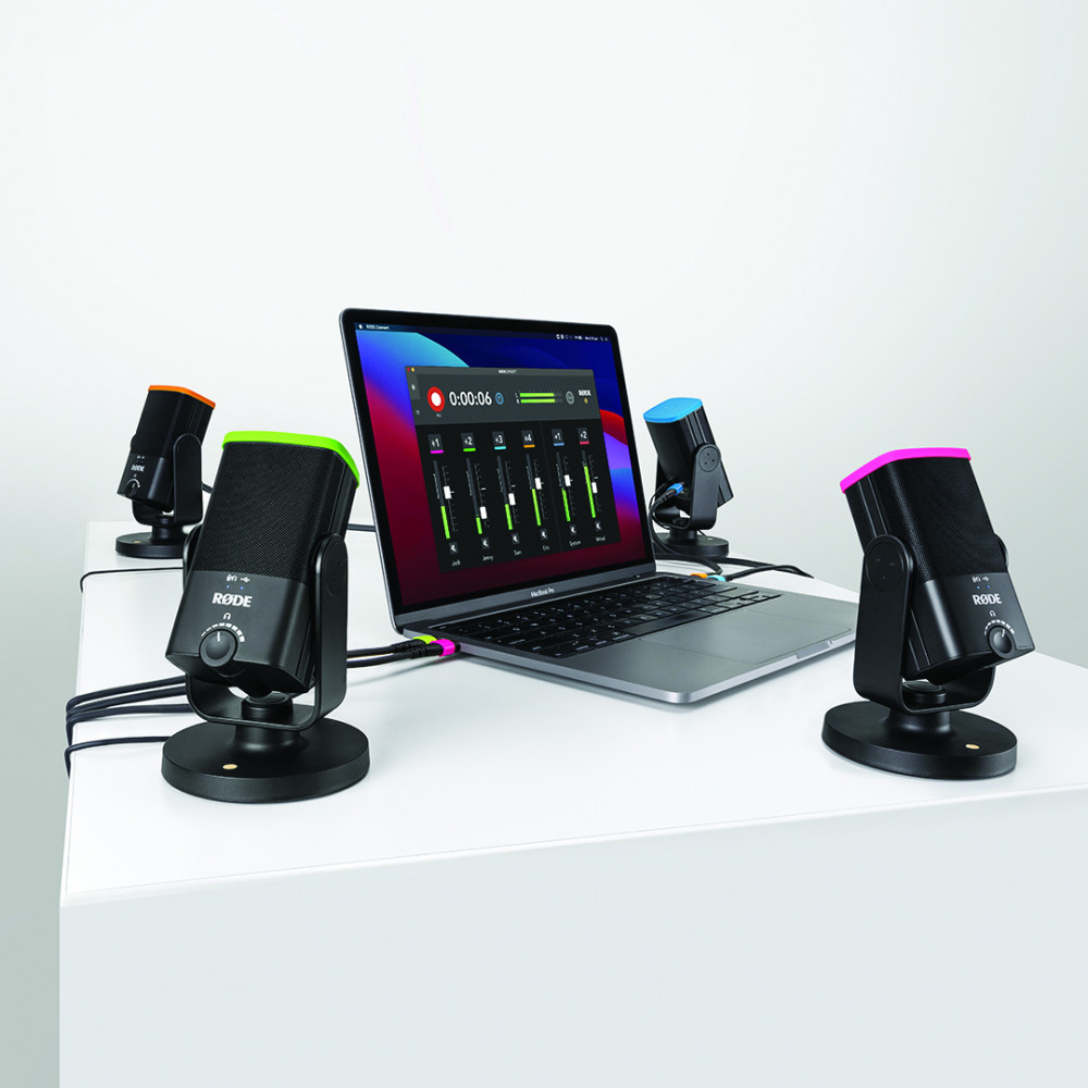 Colors är ett sett med fyra färgkodade lock och kabelmärkningar (USB-C eller USB-A) speciellt framtagna för NT-USB Mini. Färgkoderna gör det enkelt att skilja på de olika kanalerna och vem som pratar när du använder RØDEs nya app RØDE Connect. Colors gör det enkelt att hålla koll på samtalet