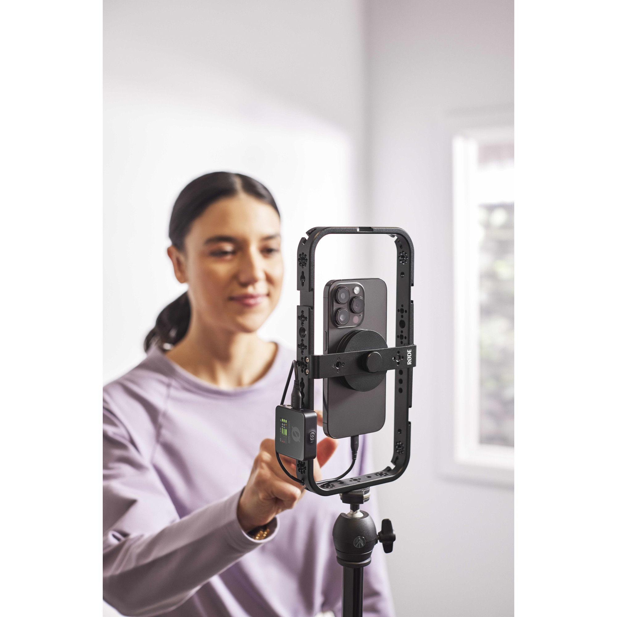 Med sin kraftfulla magnetiska monteringsskiva för MagSafe® iPhone® eller smartphone med ett MagSafe-kompatibelt fodral, har det aldrig varit enklare att förvandla din telefon till ett kraftpaket för videofotografering. Montera din smartphone, koppla till kablar och börja filma för ditt oslagbara content.
