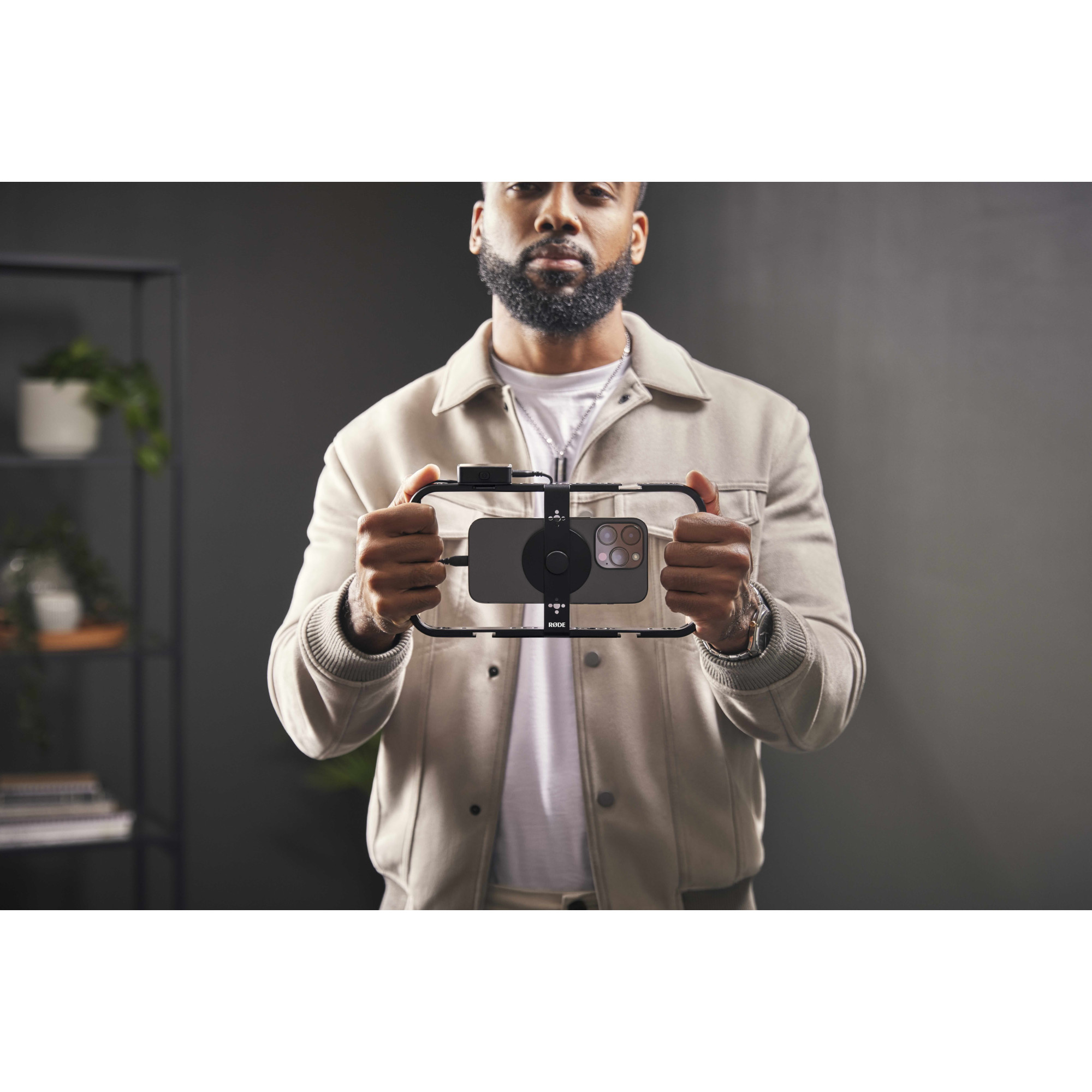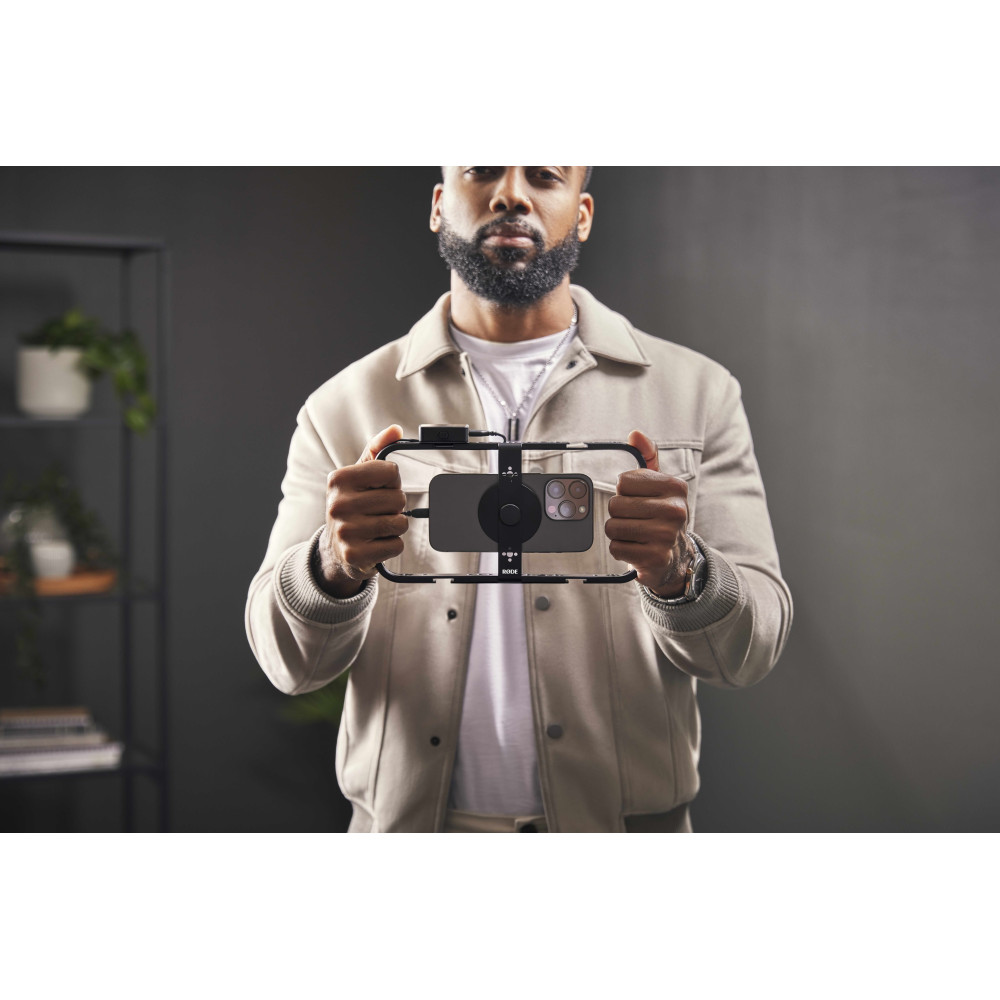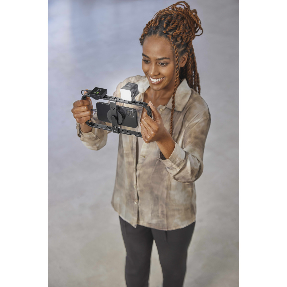 Phone Cage förvandlar din smartphone till en professionell rigg för filmskapande. Med sitt ultrasäkra monteringssystem fäster man blixtsnabbt och lätt en MagSafe® iPhone® eller smartphone med ett MagSafe-kompatibelt fodral. Phone Cage är den perfekta lösningen för att höja nivån när du filmar med din smartphone. Phone Cage har integrerad kabelhantering, fem blixtskofästen för att fästa både mikrofoner och belysning samt ett brett utbud av 1/4-tums och 3/8-tums gängor för användning med stativ, handtag och andra tillbehör.