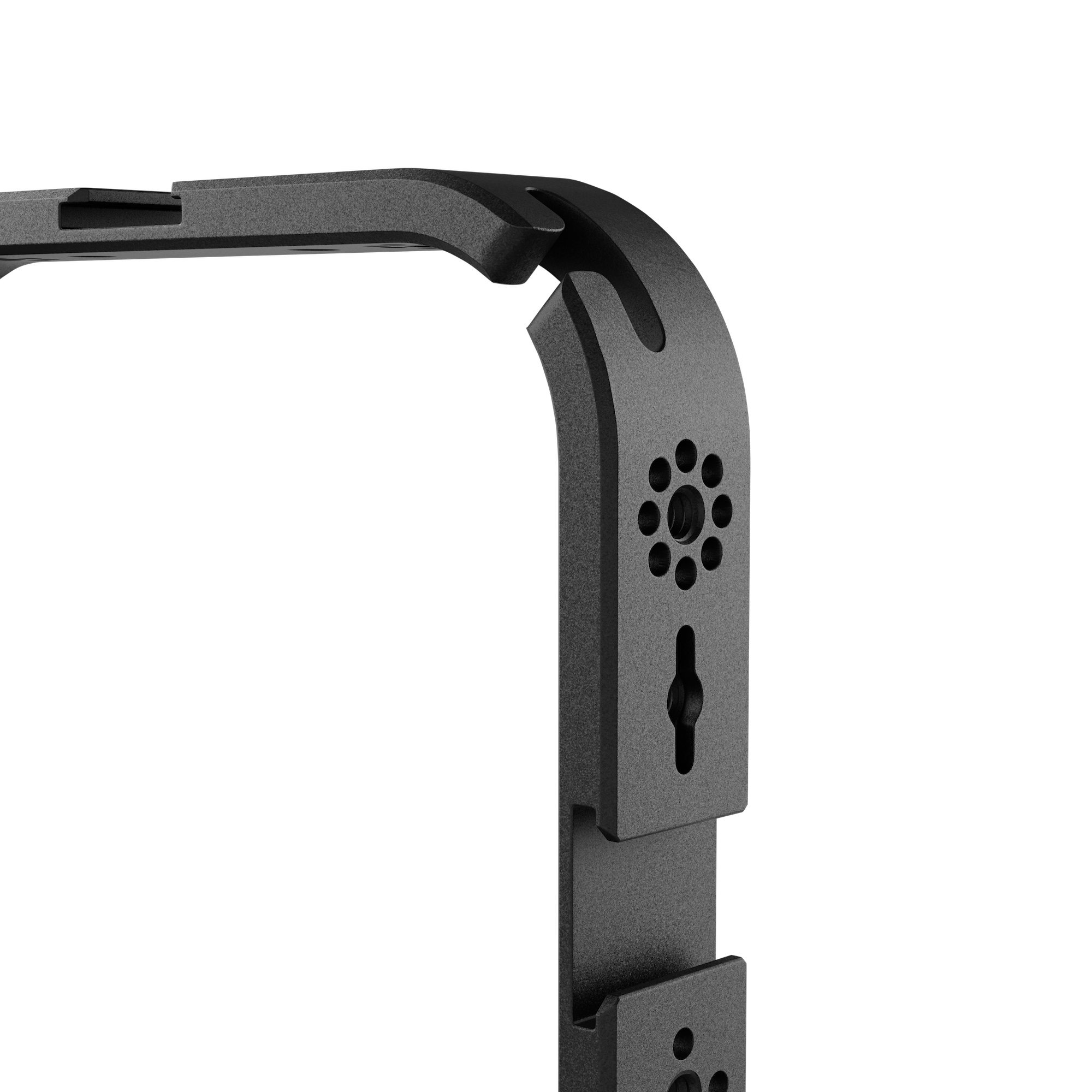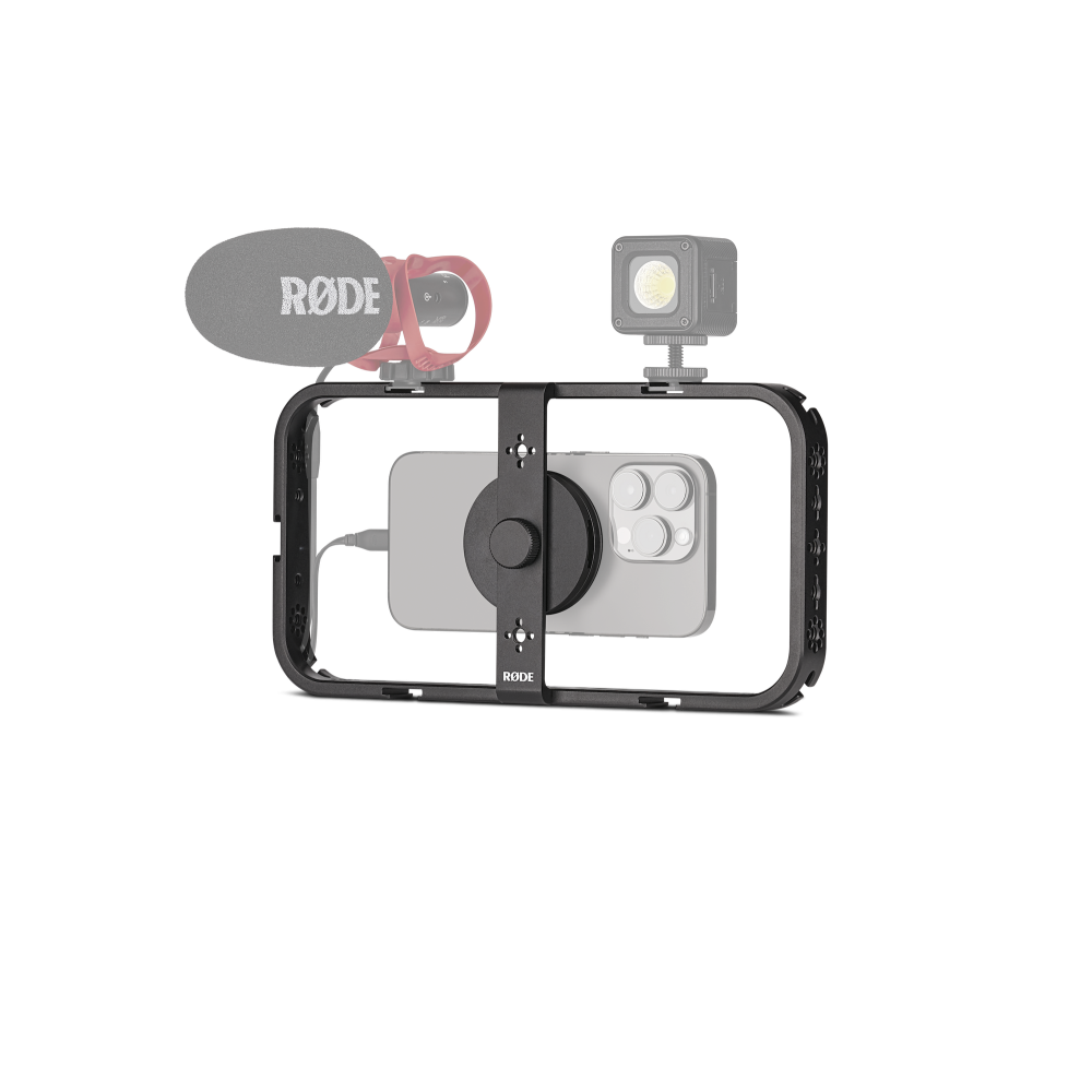 Med Phone Cage kan du skapa den ultimata mobila riggen som är skräddarsydd för dina exakta behov tack vare det breda utbudet av monteringsalternativ. Med 33 monteringsgängor, fem blixtskofästen och kompatibel med ARRI-standarden med låsstift möjliggörs montering av mikrofoner, lampor, handtag, armar, stativ och andra tillbehör i alla tänkbara konfigurationer.